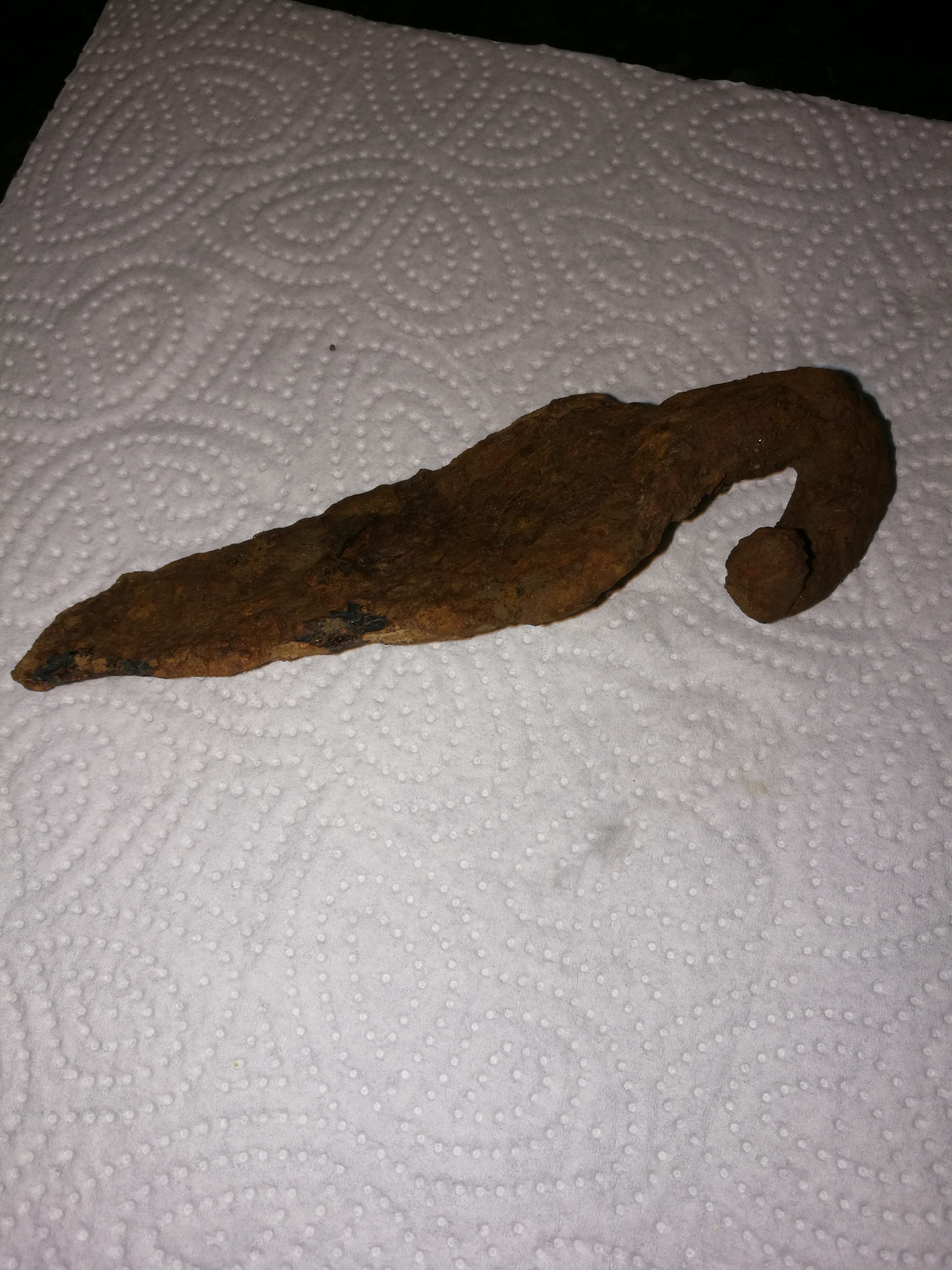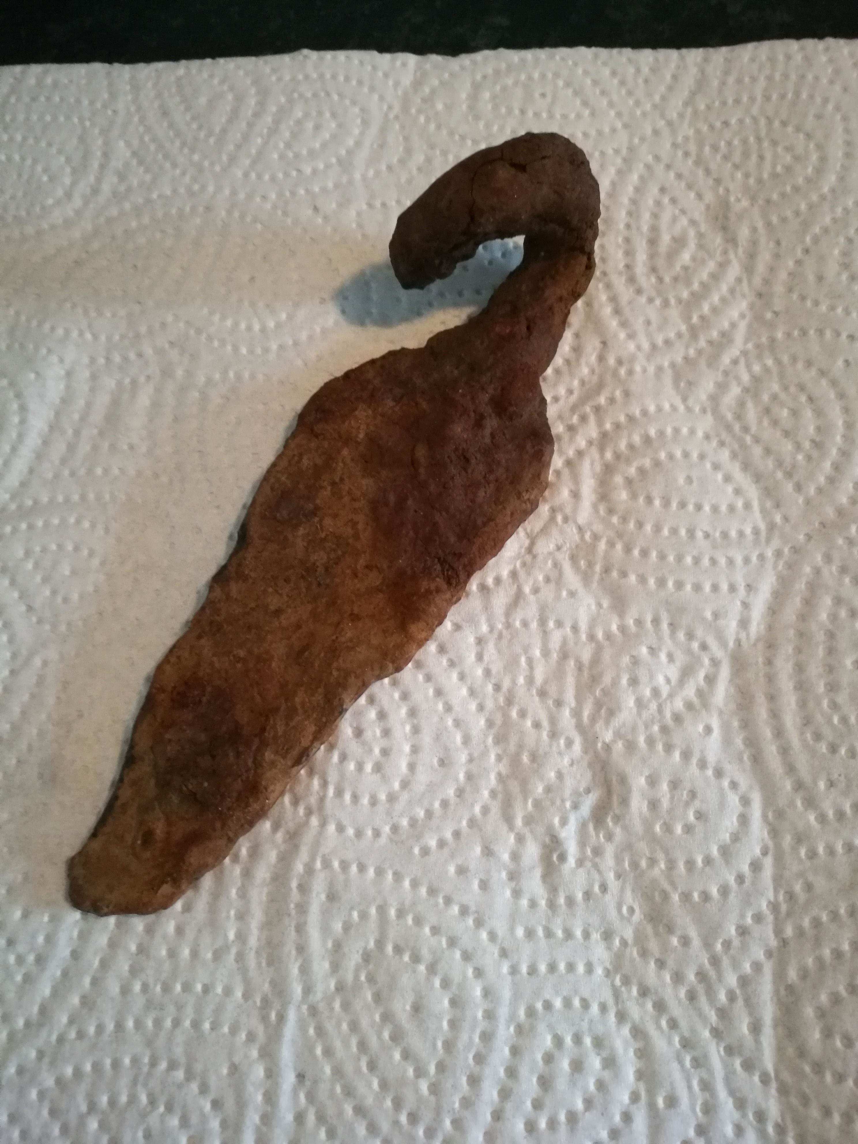 Hallo zusammen, endlich ist mein Möhrenacker wieder frei und dann finde ich so ein spitzes Ding.( ca.13cm groß ) Hab absolut keine Ahnung was es sein kann. Zur Info: Als Beifund kam noch 1/2 Stuber , 3 Pfennige von 1840 etc.