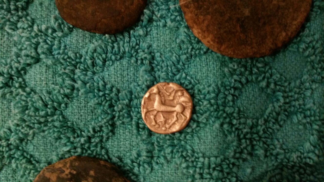 Hallo Ist ein 1/4 Stater Material Elektron (Natürliches Silber Gold Gemisch). Sie gehört zu den nicht genau bestimmbaren Münzen. Sie Hatte Ihre Verbreitung in Ostgallien und der Schweiz. Sehr schöne Stück.