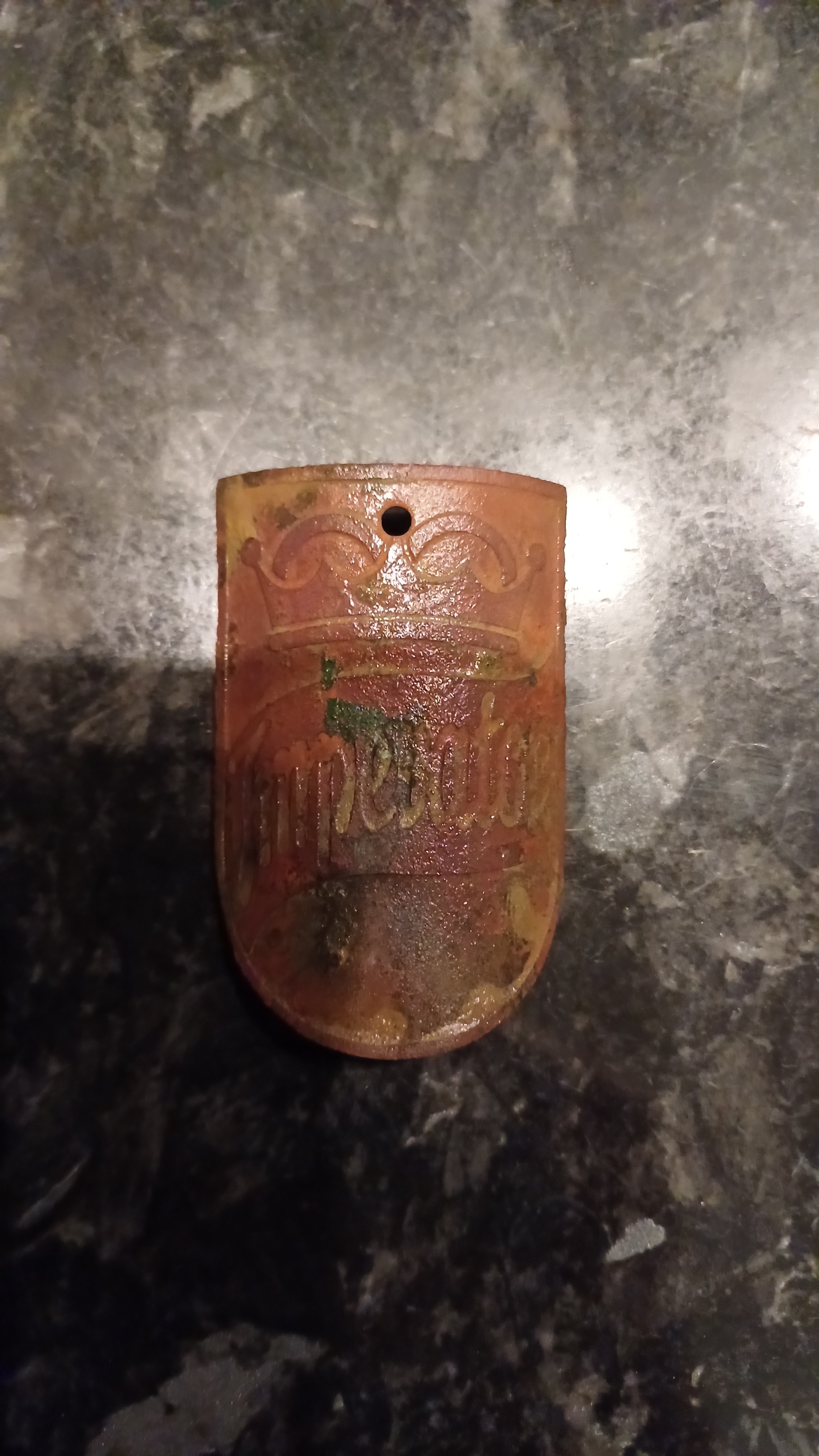 Vorne steht Imperator und oben ist eine Krone und ein Loch zum befestigen.