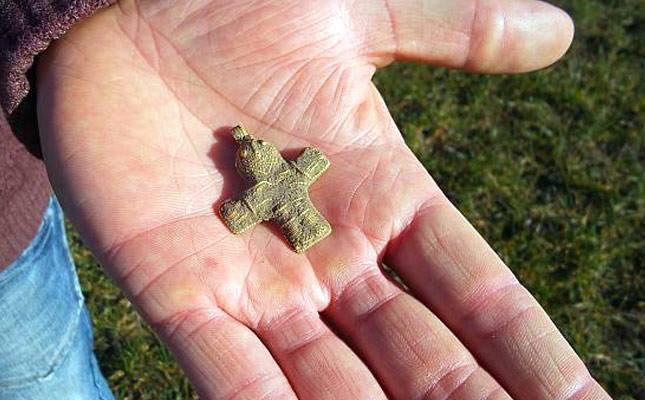 Wikinger Kreuz aus dem 10. Jahrhundert - Gefunden mit einem Metalldetektor auf einem Feld.