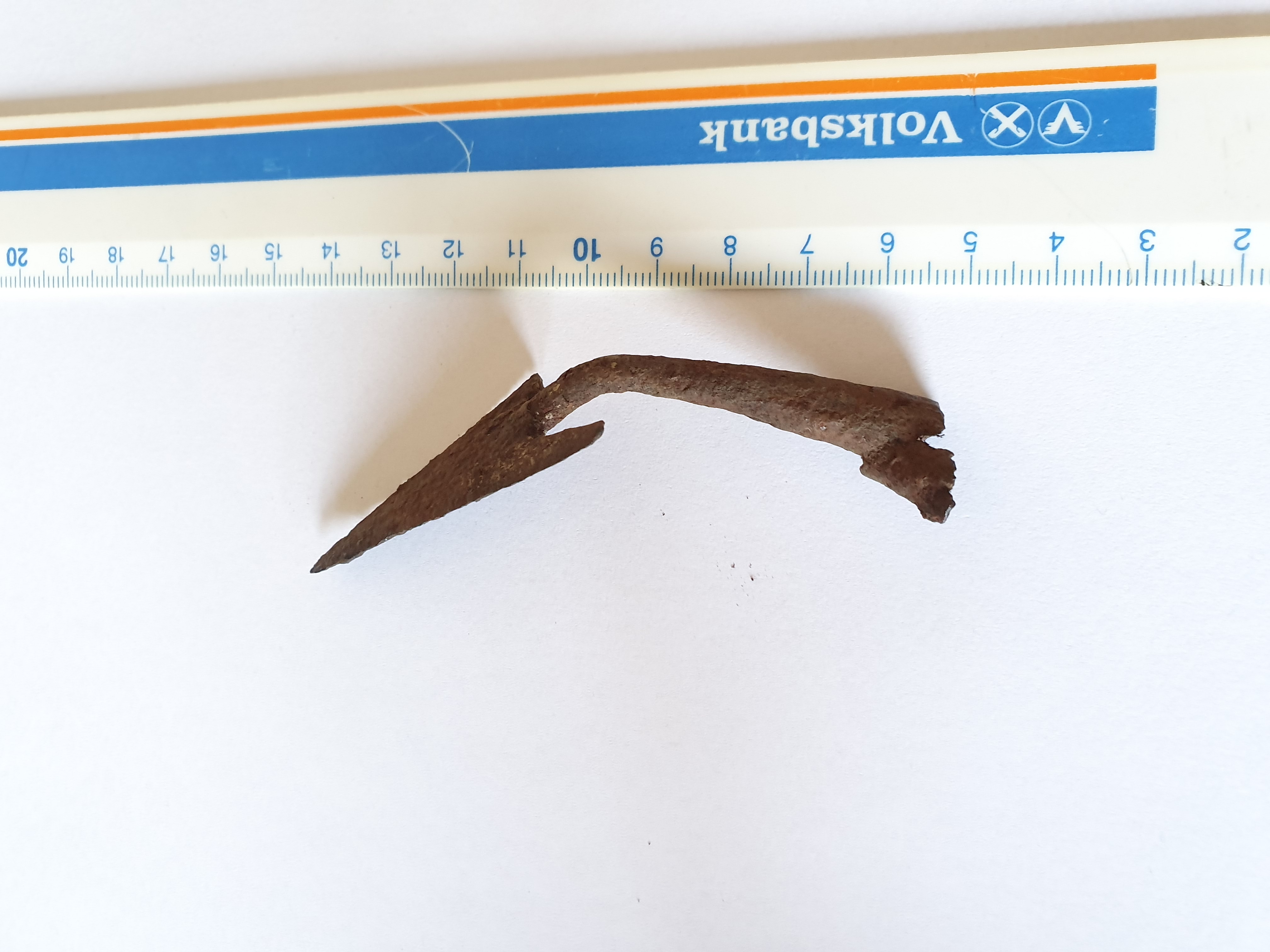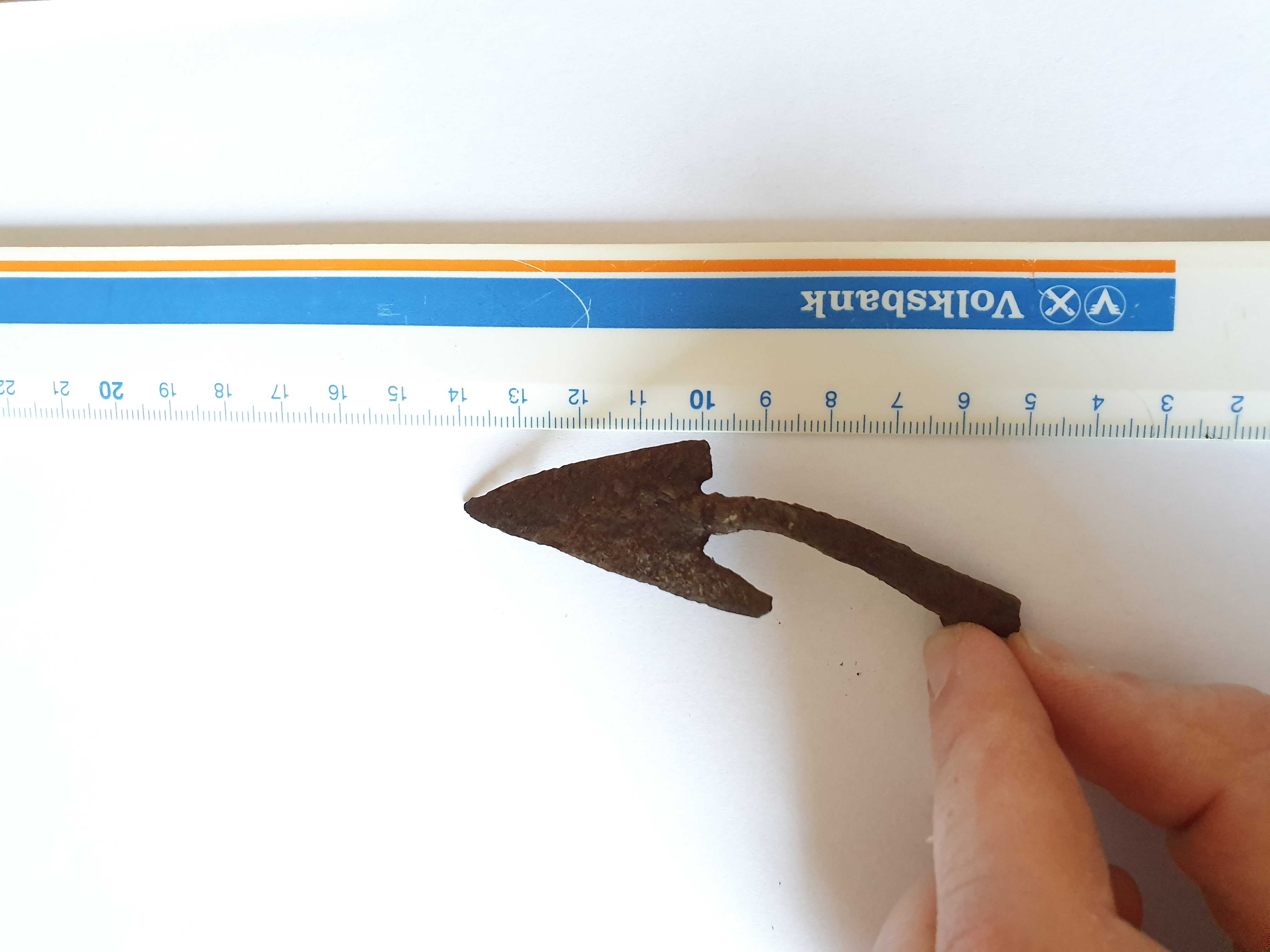 Das ist eine sogenannte ungarische Pfeilspitze. Datierung 10. Jahrhundert.
