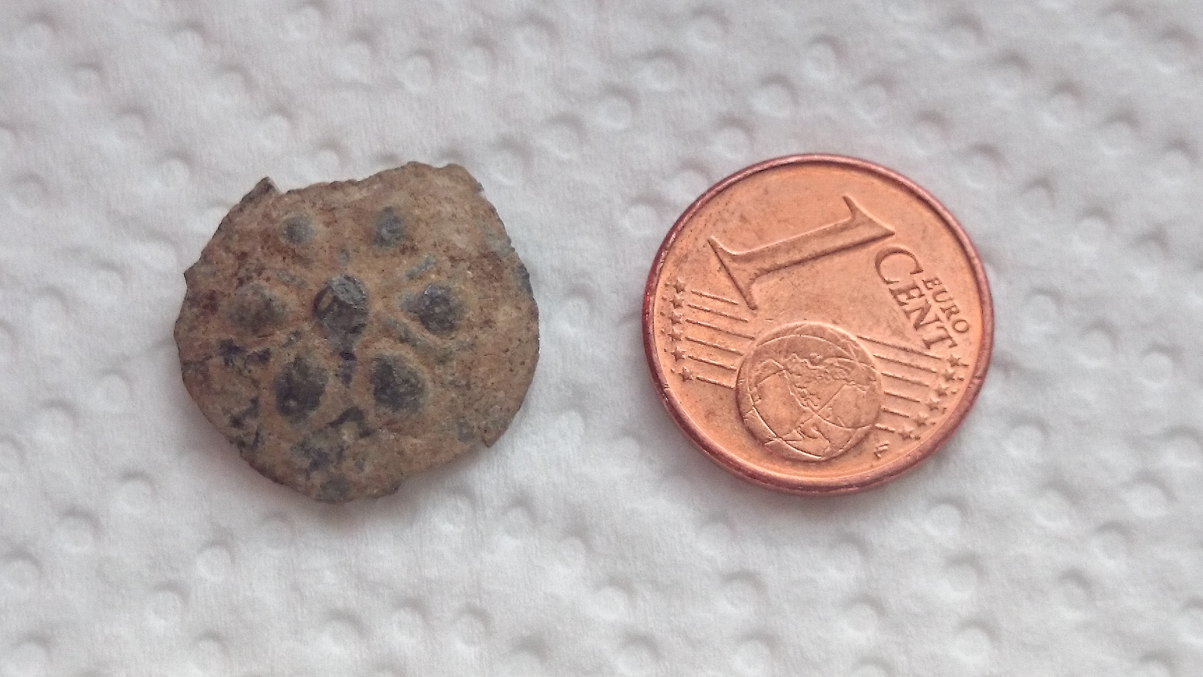 Wollte mal diesen Knopf vorstellen. Material Blei mit einer Art Blumen / Sternmuster. Ziemlich großer Ösenansatz. Deshalb tendiere ich zum Mittelalter da diese Art dafür typisch ist.