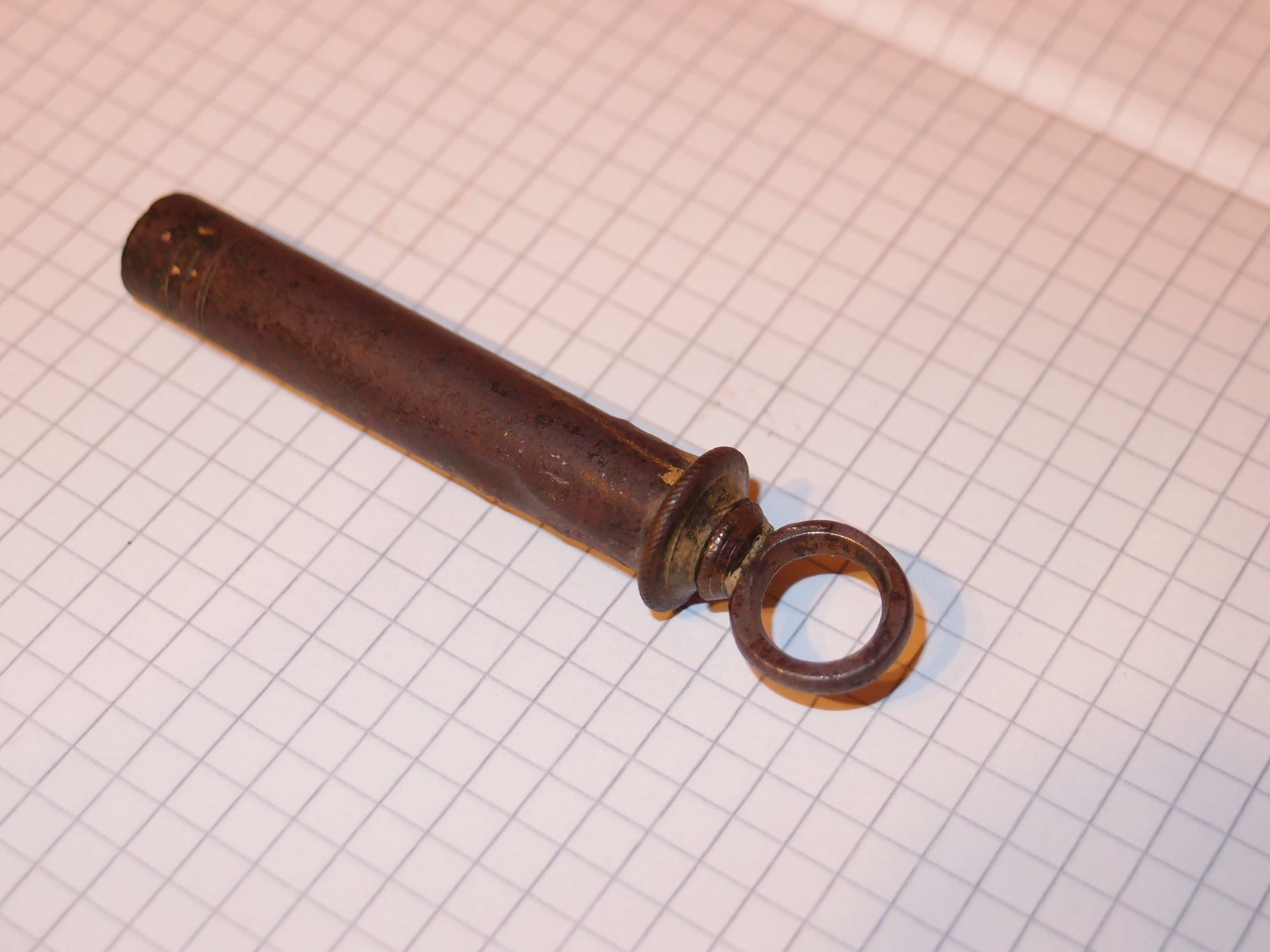 Gibt der Ring am oberen Ende nicht genug Halt um das Teil zwischen zwei Fingern zu halten und mit dem Daumen den Stössel zu drücken. Die Füllmenge dürfte ausreichen, die Medikamente waren höher dosiert und toxischer als heute. Wenn es so verwendet worden ist müsste es auch Zahnabdrücke auf dem Zylinder geben.