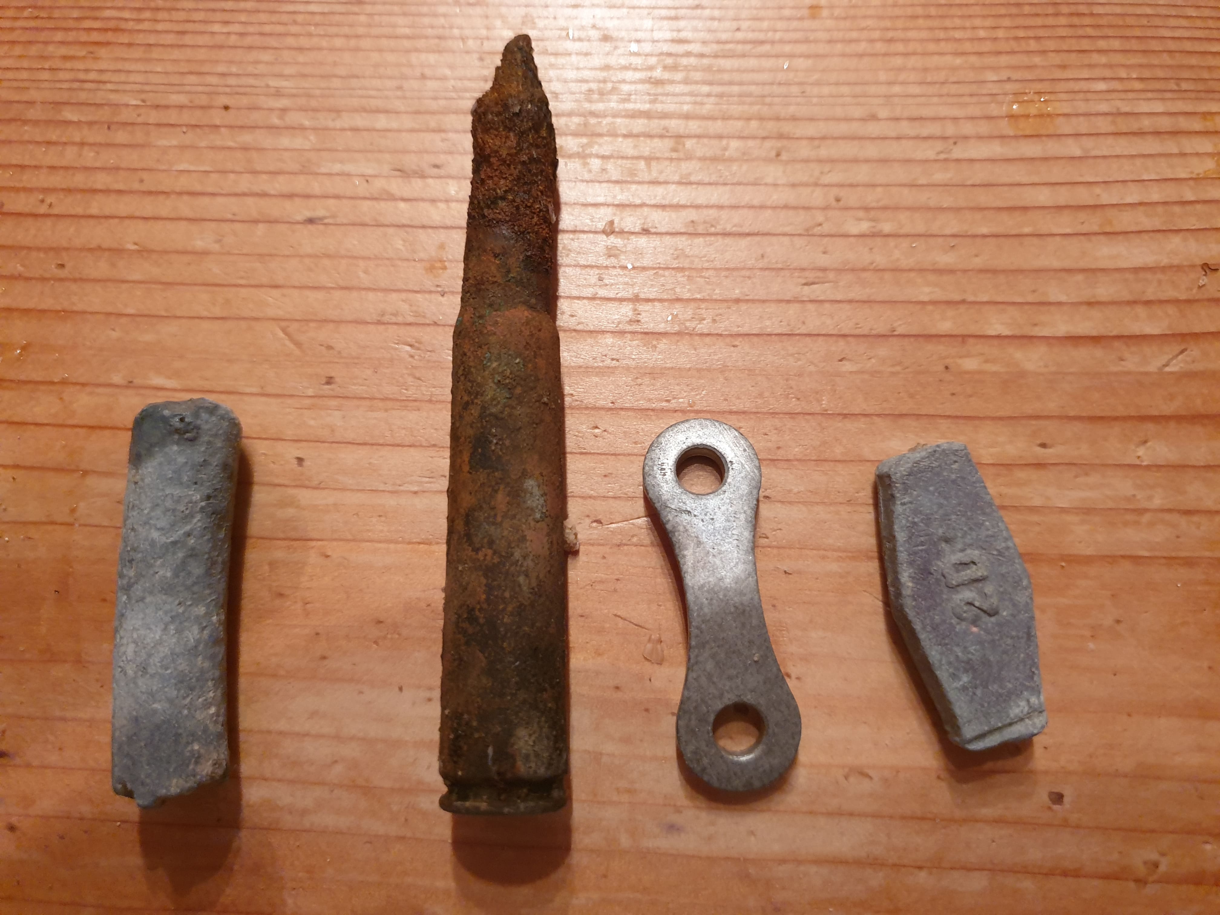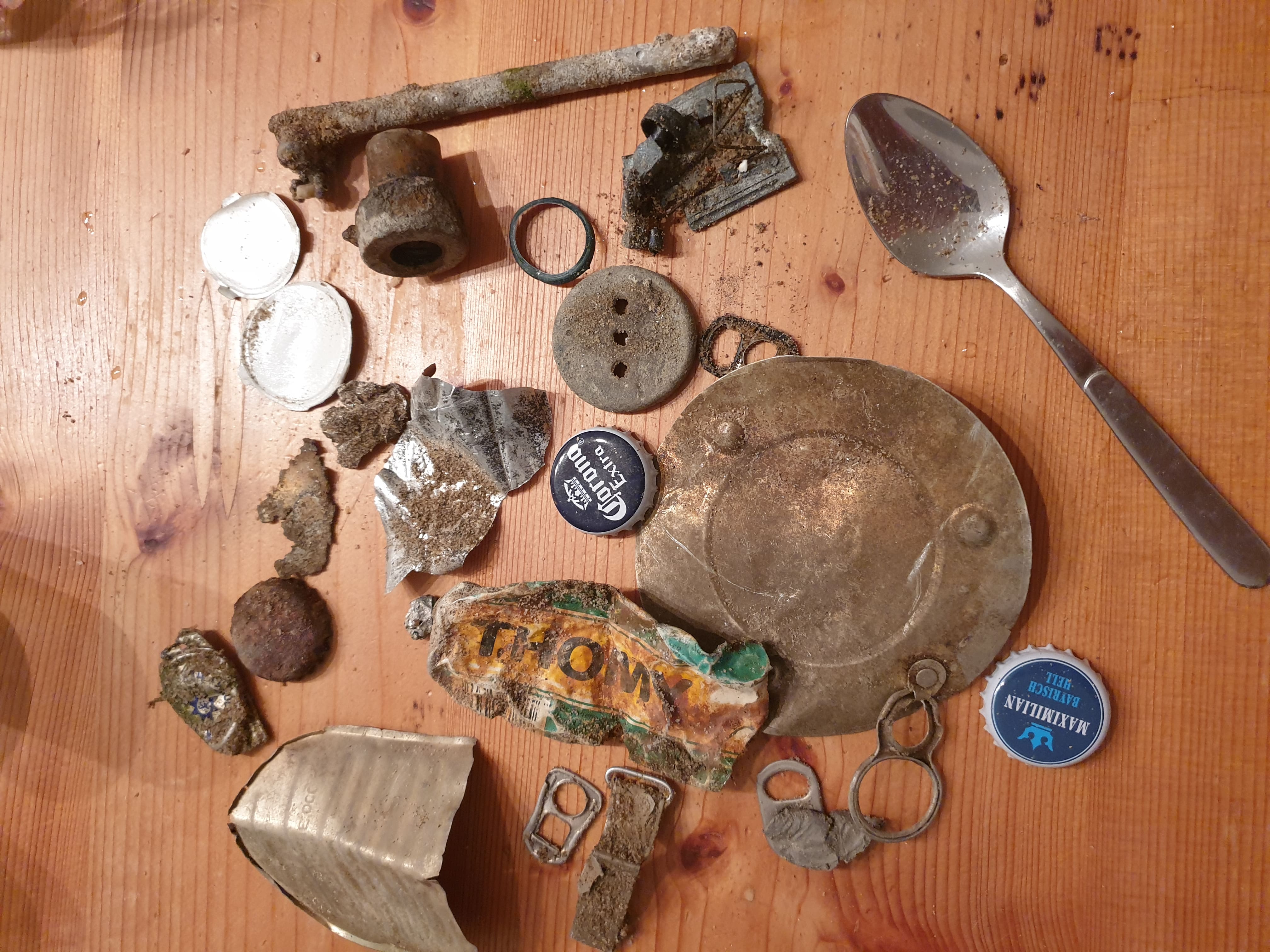Funde: Viel Müll wie immer, nur ein Kronkorken, Angel Blei, 3,60 Euros, ein Geschoss und ein schöner Silber Ring.