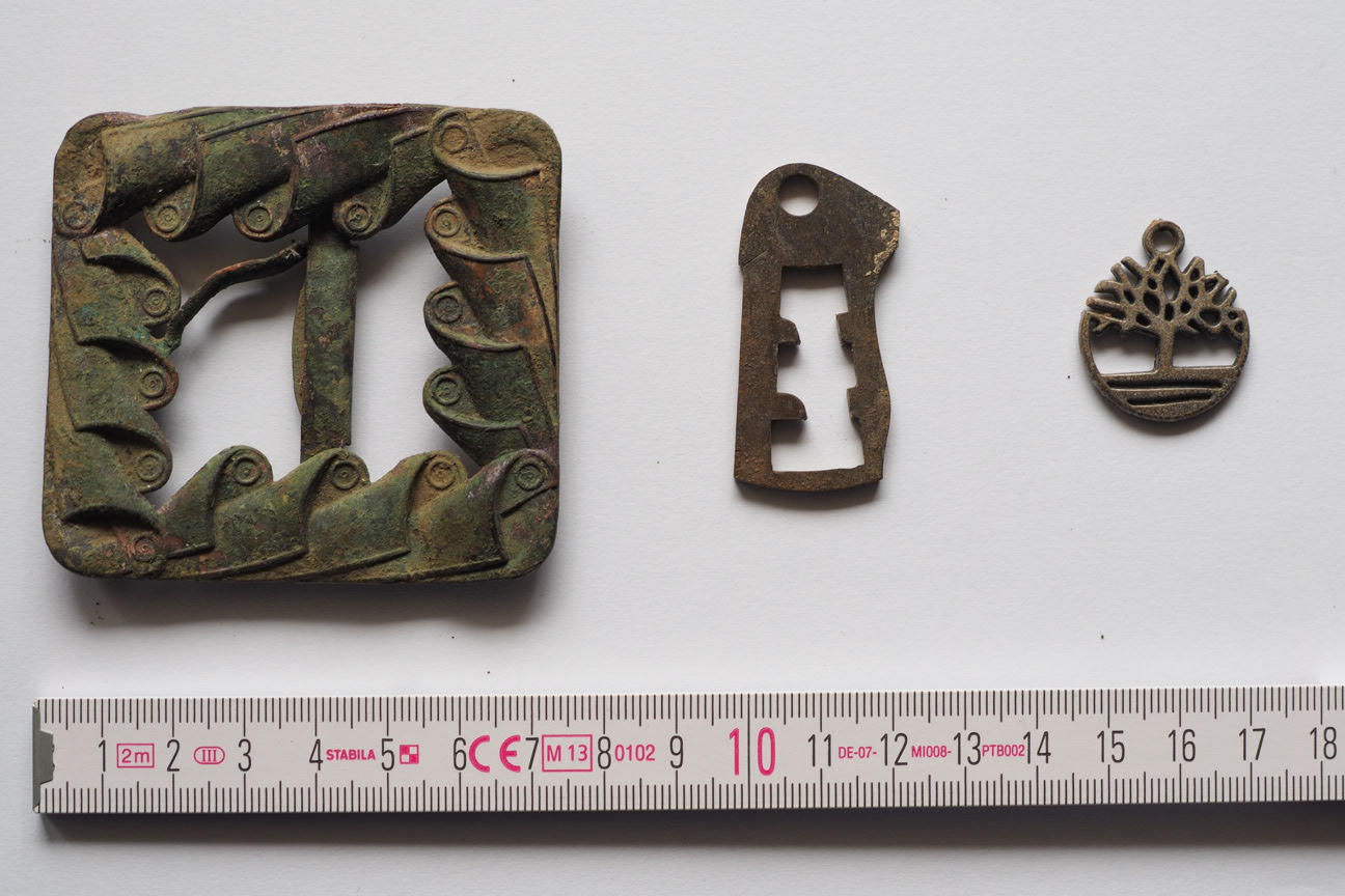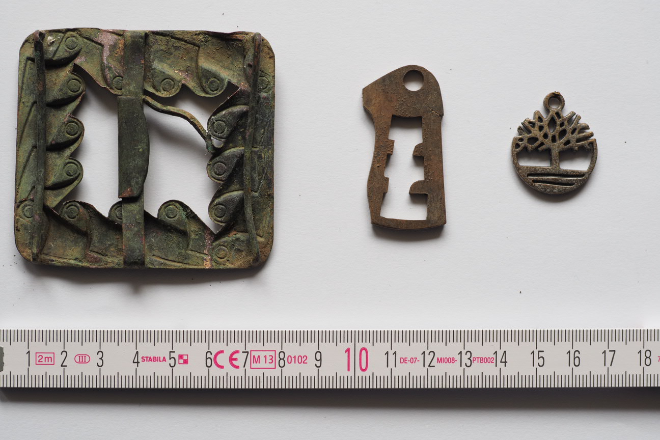 Anhänger: nicht magnetisch, neuzeitlich, von einem Waldarbeiter- da es mit drei zwanzig Euro Cent Münzen zusammen im Boden lag!