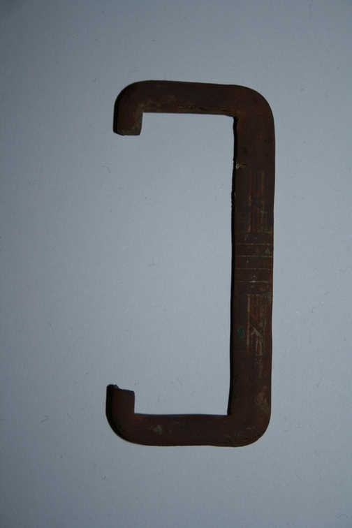 Gestern bin Ich auf diesen Schubladenhenkel gestoßen. Kann mir jemand mehr dazu sagen, an einer kleinen beschädigung schimmert es Goldfarben hervor ist aber keins. Das Muster ist auf beiden Seiten das gleiche. Länge 7 cm, wiegt 17 gramm.