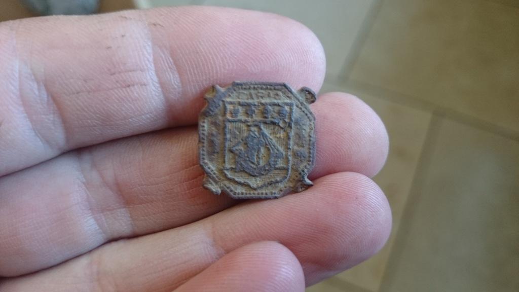 Hab dieses coole Teil gefunden. Material Kupfer relativ schwer finde ich. Es hat an den Ecken vier kleine Ösen. In der Mitte erkenne ich ein Schiff meiner Meinung nach.Oben drüber 4 Sterne und darüber müsste Paris stehen.