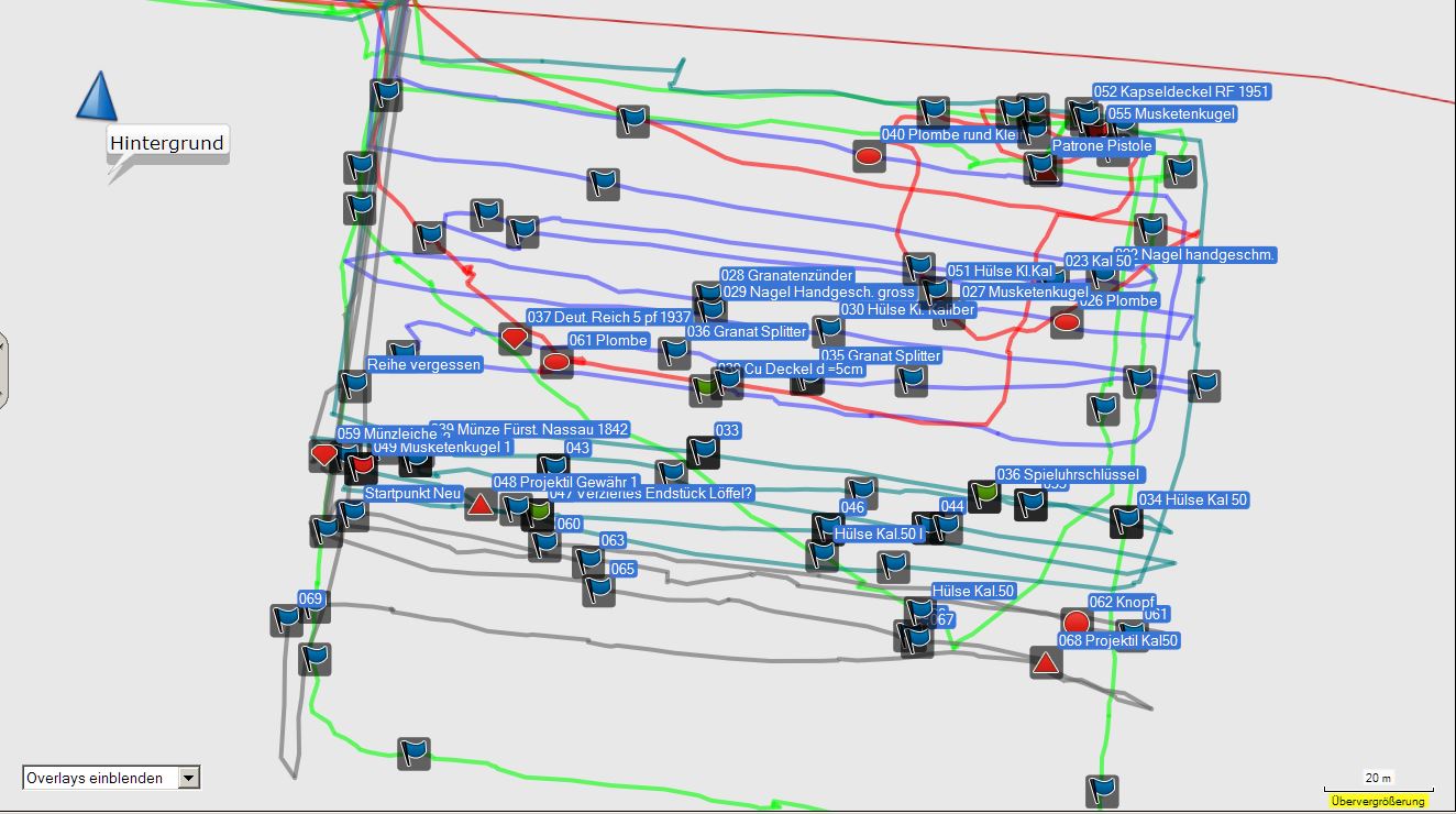 Hi, sehr schöne Funde, aber was mich beeindruckt ist die Track-Aufzeichnung! Hast du das schon auf dem Feld gemacht oder erst Zu Hause am PC?