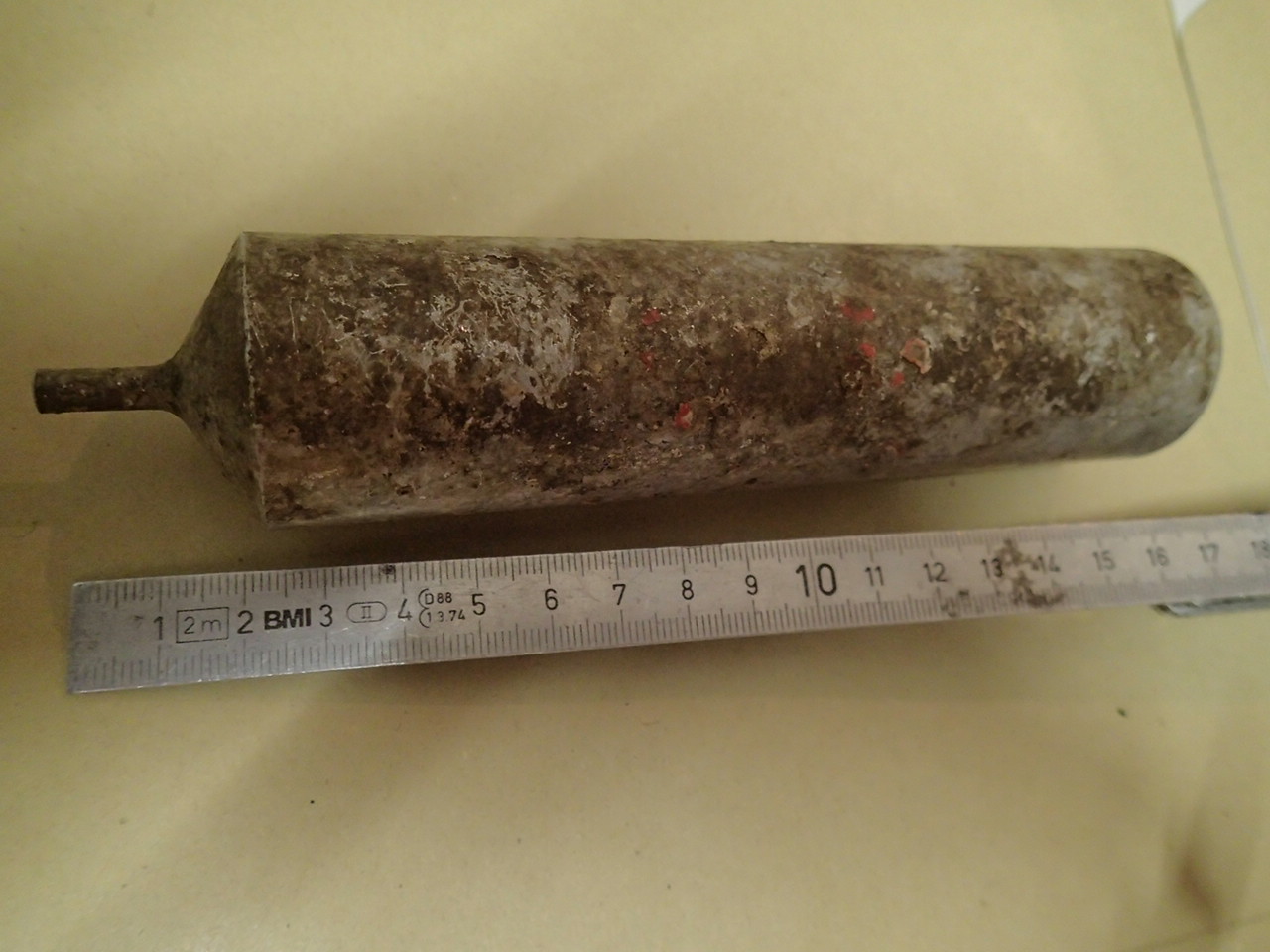 Hallo, ich bin neu hier und gespannt darauf, wer mir bei der Identifikation dieses Bodenfundes helfen kann (wurde zwischen Düsseldorf und Köln gefunden). Ixh vermute es ist aus dem 2WK. Es sind Reste von roter Farbe drauf zu erkennen. Es ist leicht uns scheint leer zu sein. Vielen Dank im Voraus für jeden konstruktiven Hinweis!!!