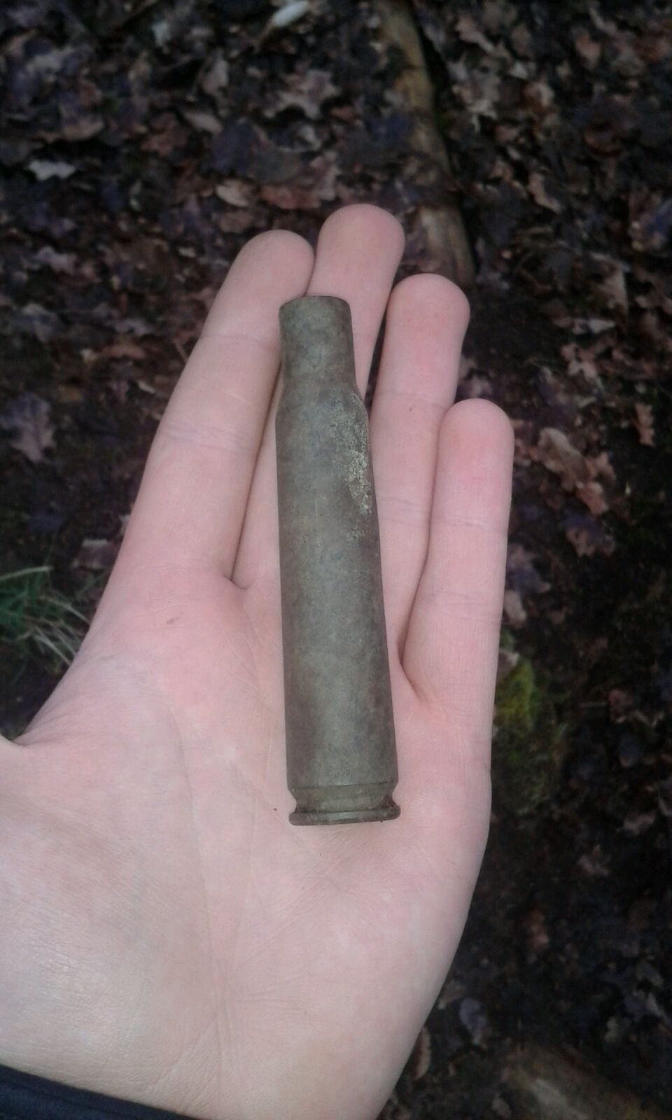 Hi leute hier ist mein erster fund beim ersten mal sondeln. es ist eine patronenhülse aus dem zweiten weltkrieg, baujahr 1943 denke ich. stimmt das soweit? und weiss einer woher sie kommt?