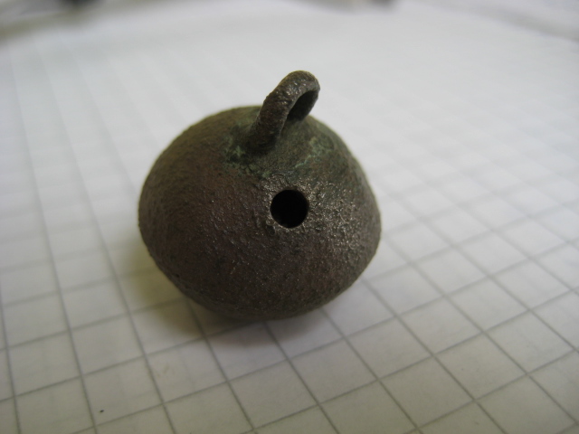 Gewicht 7 Gramm, Material evt. Kupfer, keine Naht zu erkennen.