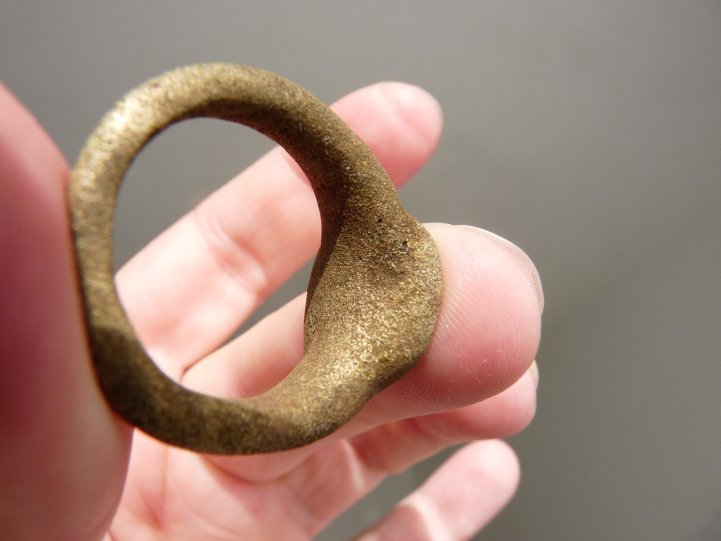 Wir haben in der Nähe eines Burgstalls, außerhalb der gekennzeichneten Zone (Denkmalatlas Bayern), einen "alten" Ring gefunden.