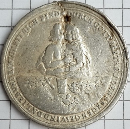 Ja das ist eine Silbermedallie aus dem Jahre 1638-1650 aus Bremen und ist eine Ehemedaille o.J. nach Vorbild v.J.Blum.