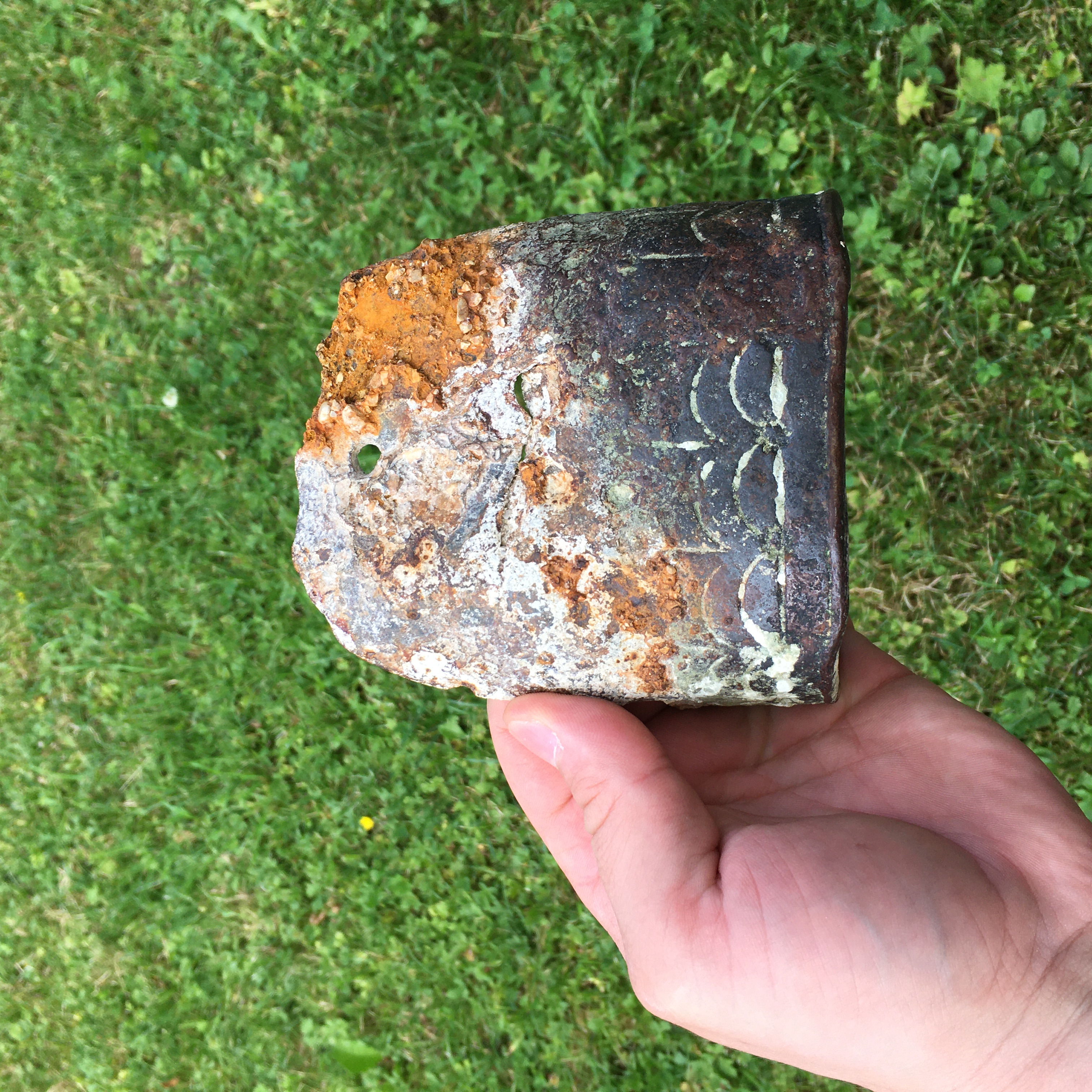 anbei ein fotos von einem metallobjekt, das ich letzte woche im flussbett eines kleinen baches gefunden habe. in unmitterbarer nähe des fundortes, gibt es ein paar klassische alpenbauernhöfe, die viehzucht betreiben. ich habe schon ein bißchen recherchiert und rumgefragt: meine bescheidenen vermutungen sind, entweder ist das objekt teil eines wagens oder das mündungsende eines holzwasserleitung. aber ich habe kaum erfahrung auf dem gebiet. interessant sind sicherlich die verzierungen. hat jemand hier so was schon mal gesehen und kann es vllt sogar zweifelsfrei zuordnen?