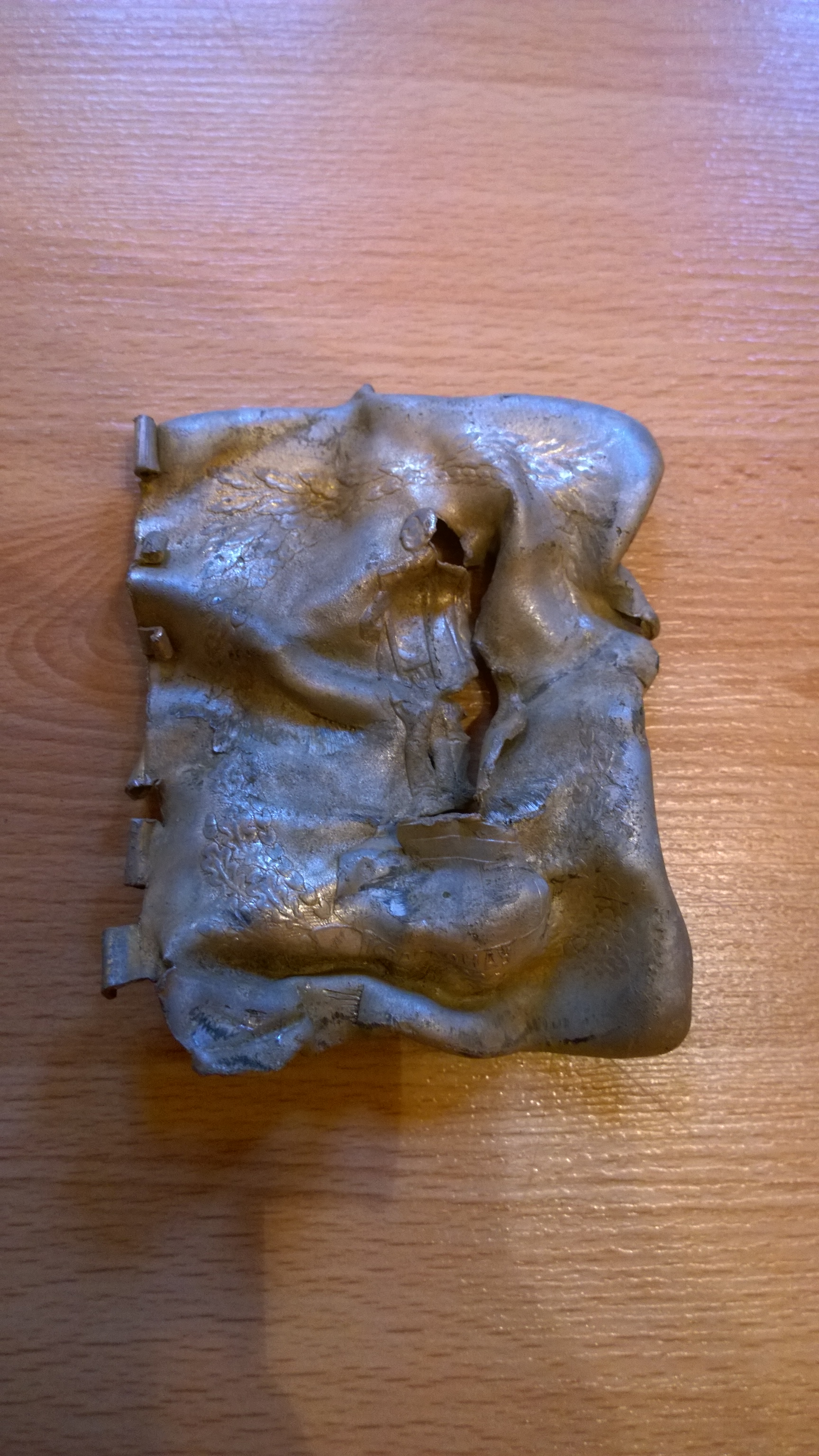 Also auf Bild 3 steht was, kann aber nicht alles entziffern! ist aber interessanter als das ganze Babarenschatz geblubber auch wenn es sich wie es ausschaut nur um Alublech handelt.