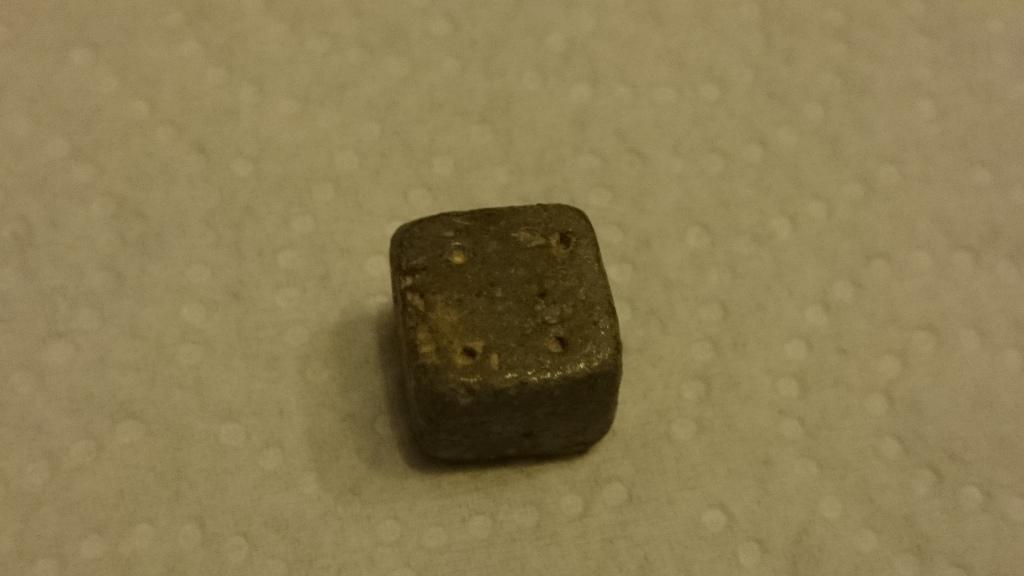1 Heller, 2 Knöpfe, 1 Werthmarke, 2 Mukus. Mein persöhnliches Highlicht ist der kleine Spielwürfel aus Blei