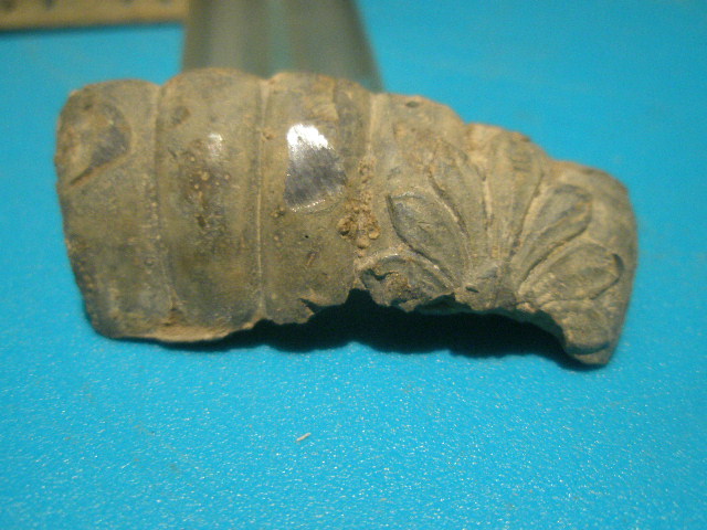 hier mal ein paar eigenartige Sachen von heute,das grosse teil scheint aus bronze oder Messing zu sein,das kleine verzierte vermutlich aus Zinn und das mit den schlitzen aus Messing vermutlich.diese teile finde ich andauernd,allerdings meist zerbrochen,darum das intresse.