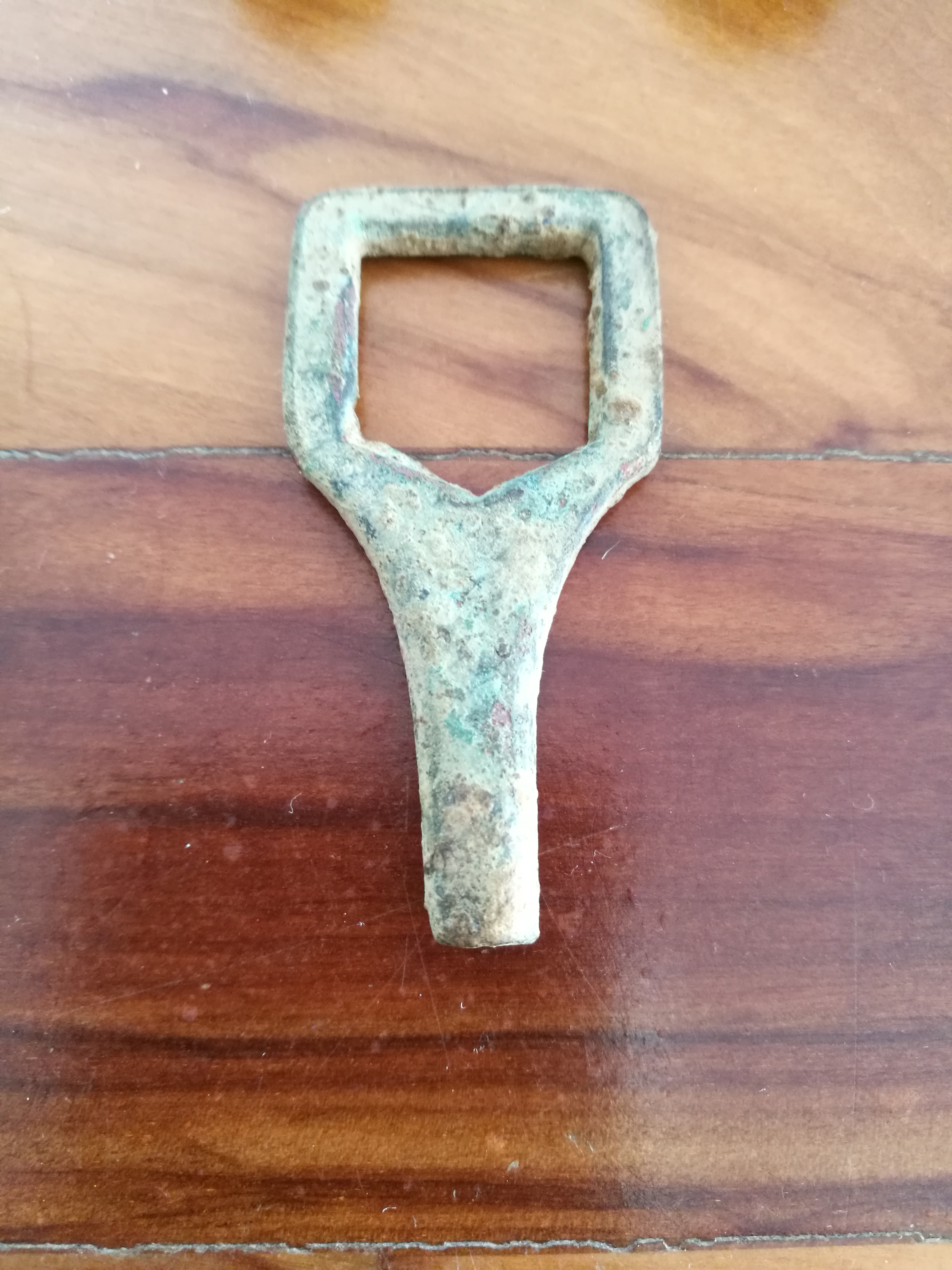 Hallo zusammen, könnte mir jemand sagen was das sein könnte? Hatte schon an ein Teil von einer Uniform gedacht da ich auch einige Musketenkugeln im Umkreis gefunden hatte.