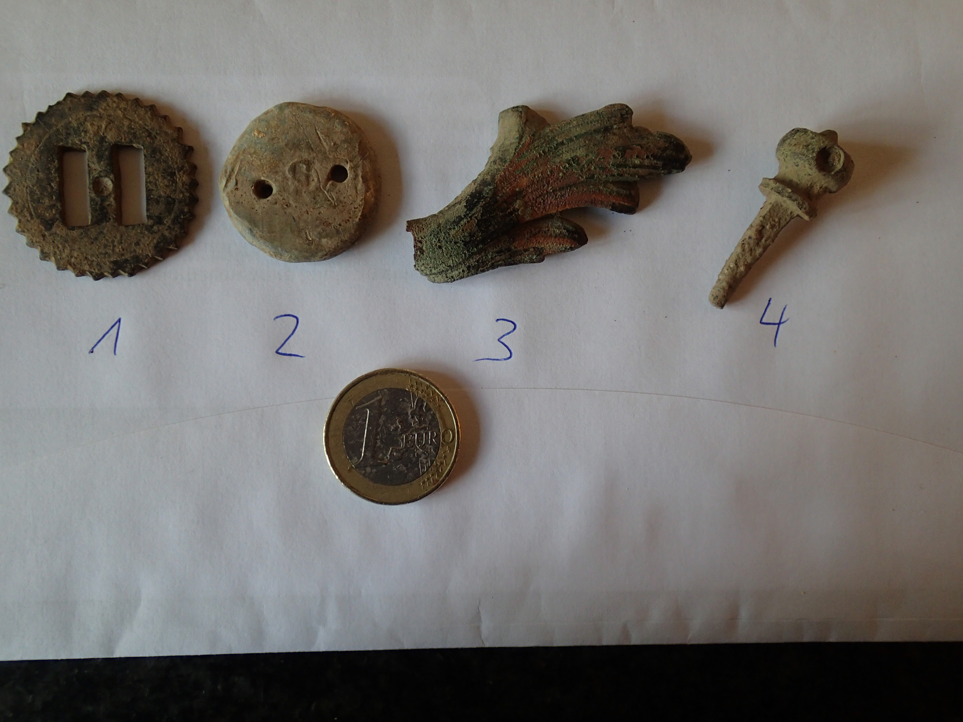 heute auf einem Acker Nähe Köln gefunden – wer kann mir sagen, um welche Objekte es sich handeln könnte (ungereinigter Fundzustand)?