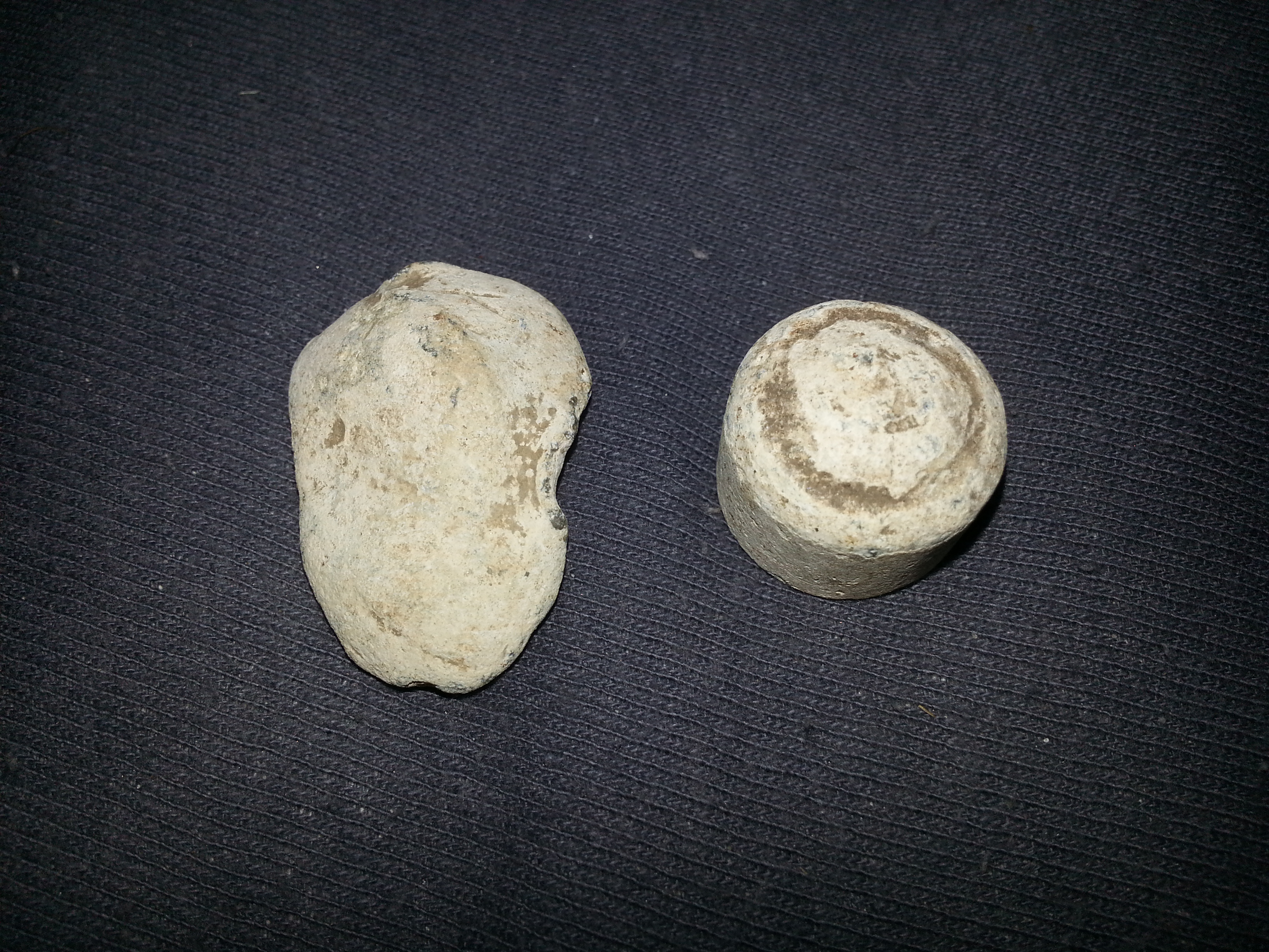 Das zweite war der Boden einer Jagd Patronenhülse kaliber 16 der Pulver Fabrik Hasloch am Main die bis ende des zweiten Weltkrieges existierte. Sie wurde mit 57-60 angezeigt.