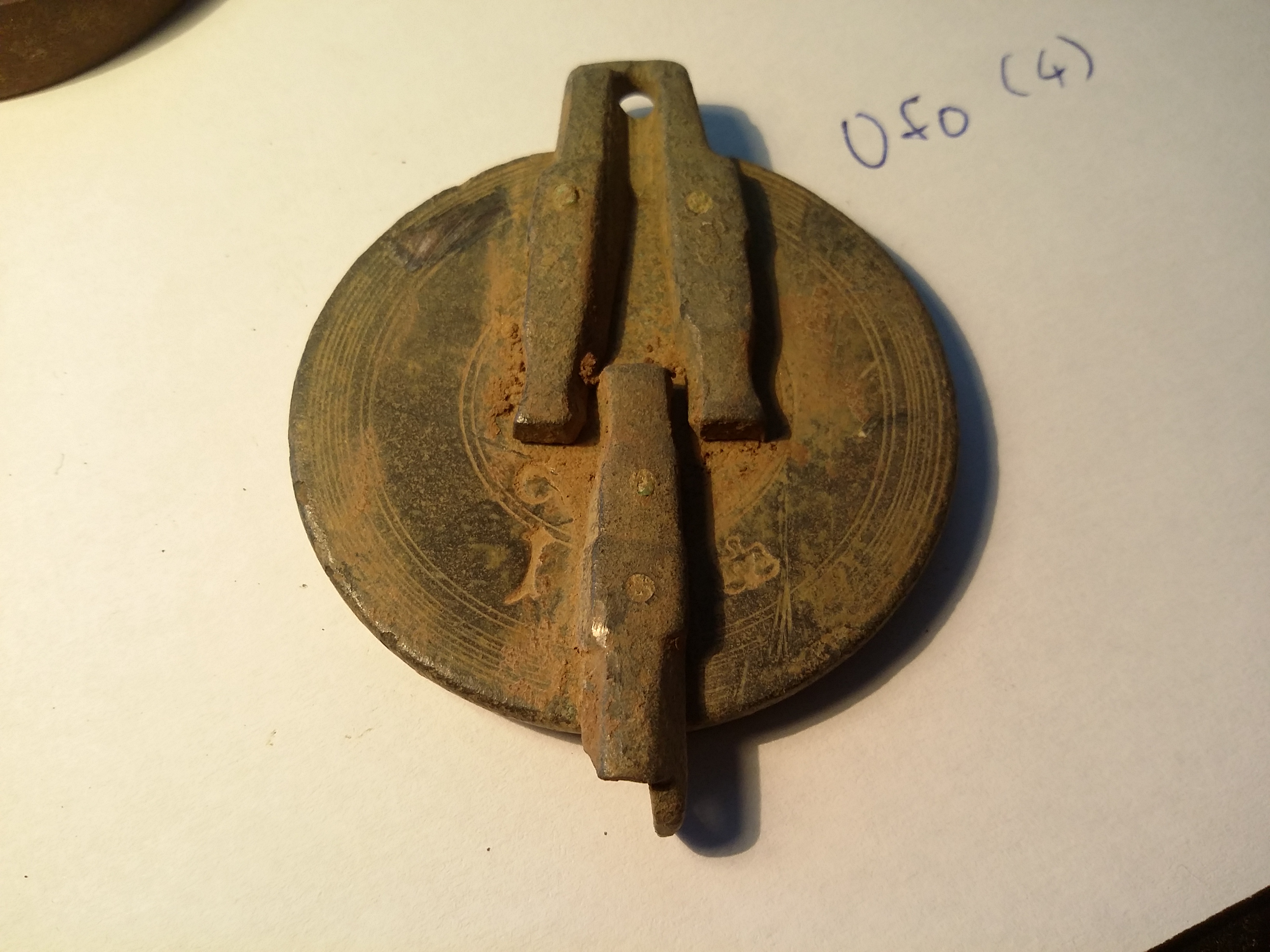 Pepe007 hat geschrieben:Könnte das eine alte Federfeinwaage zum aufhängen sein -Waagesymbol auf der Rückseite- Bohrung für Zeigerwelle auf der Vorderseite ...
