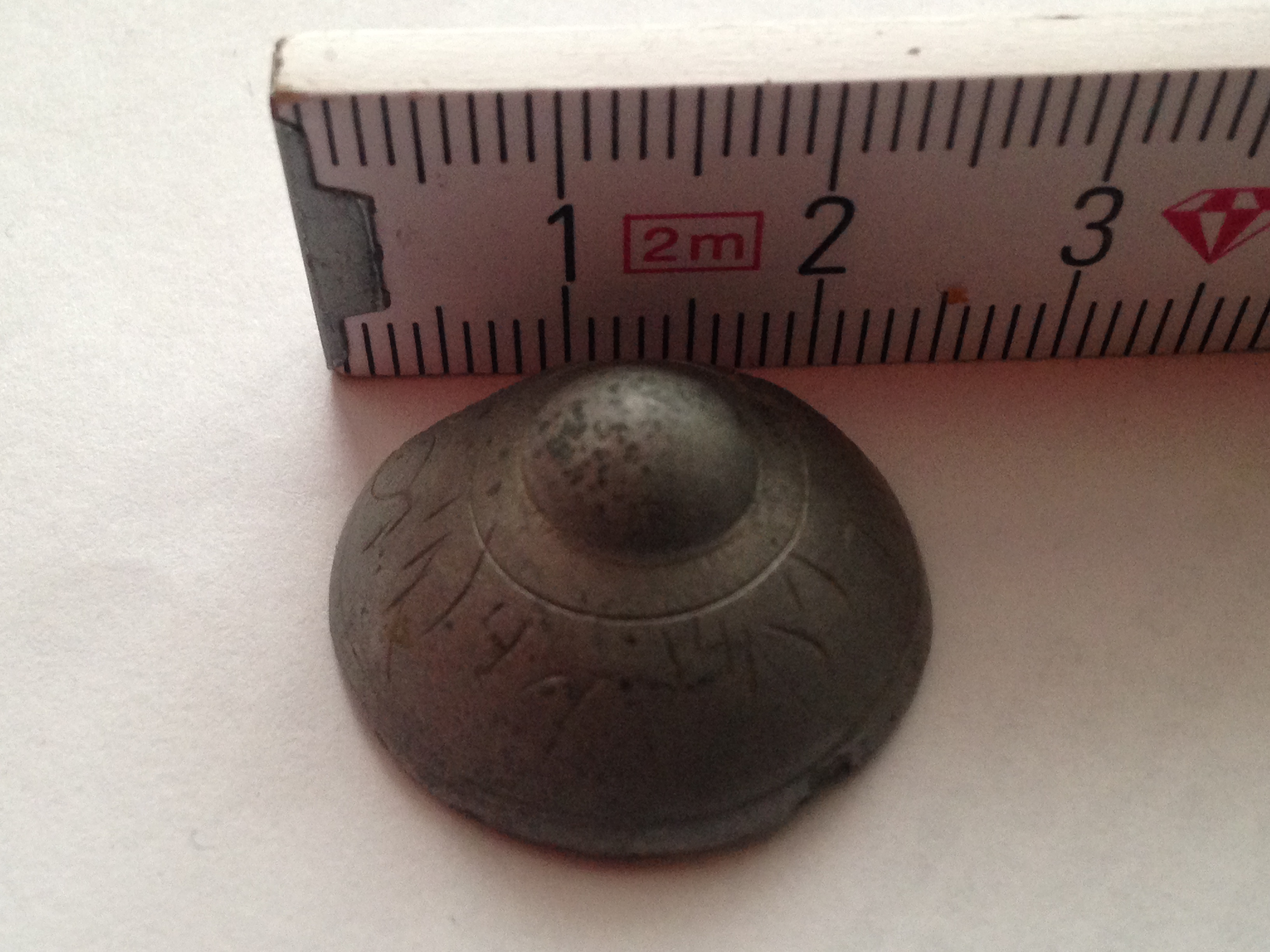 Und zwar scheint mir das vom Material her wie Zinn zu sein es hatt auch eigenartige Gravuren drauf.