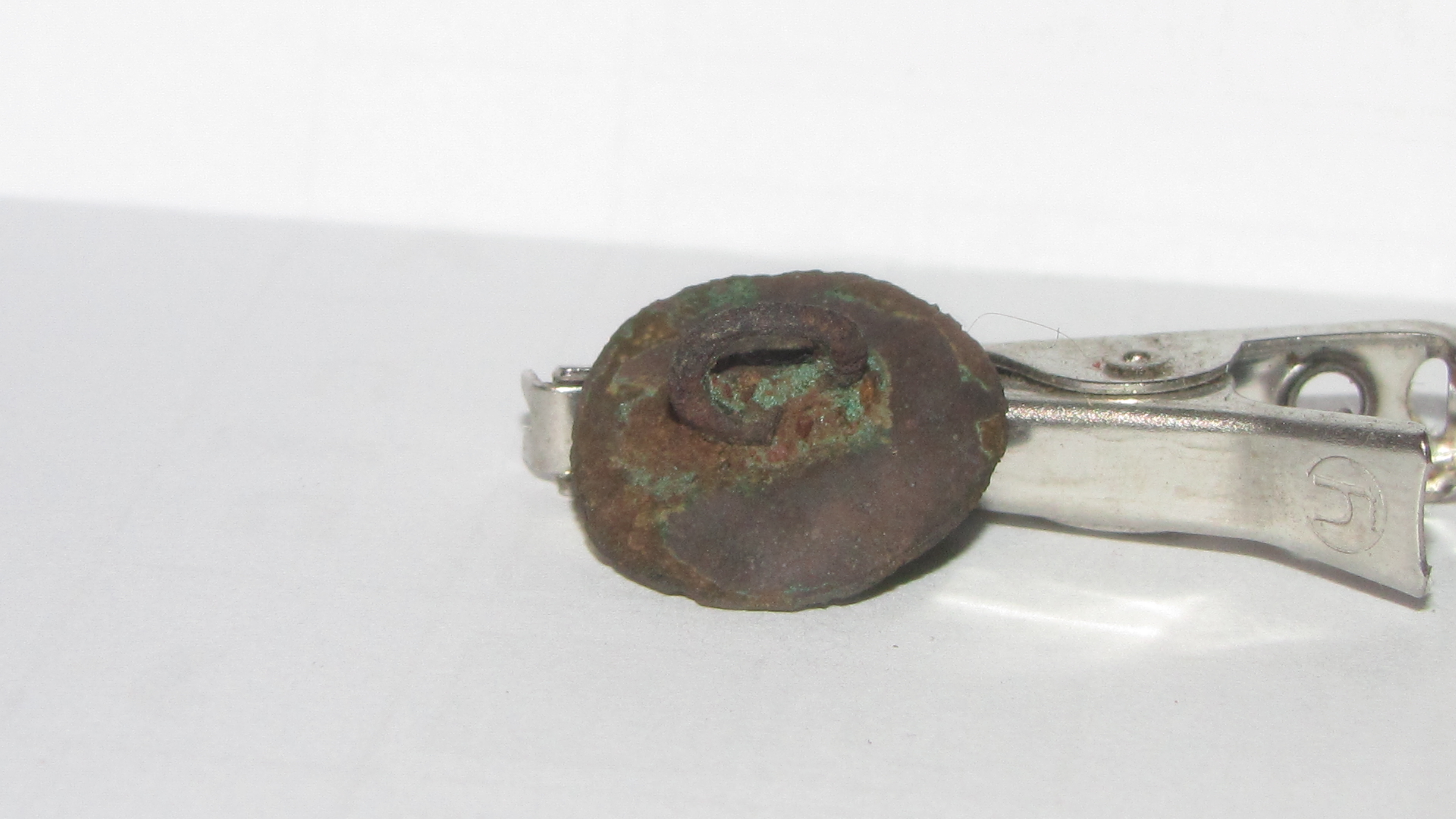 Den Knopf habe ich in der Nähe einer Wüstung gefunden die 1115 von Sachsen zerstört ("Schlacht am Welfesholz") wurde ,aber das kann ja eigentlich gar nicht sein . Das sächsische Wappen kam wohl erst später.
