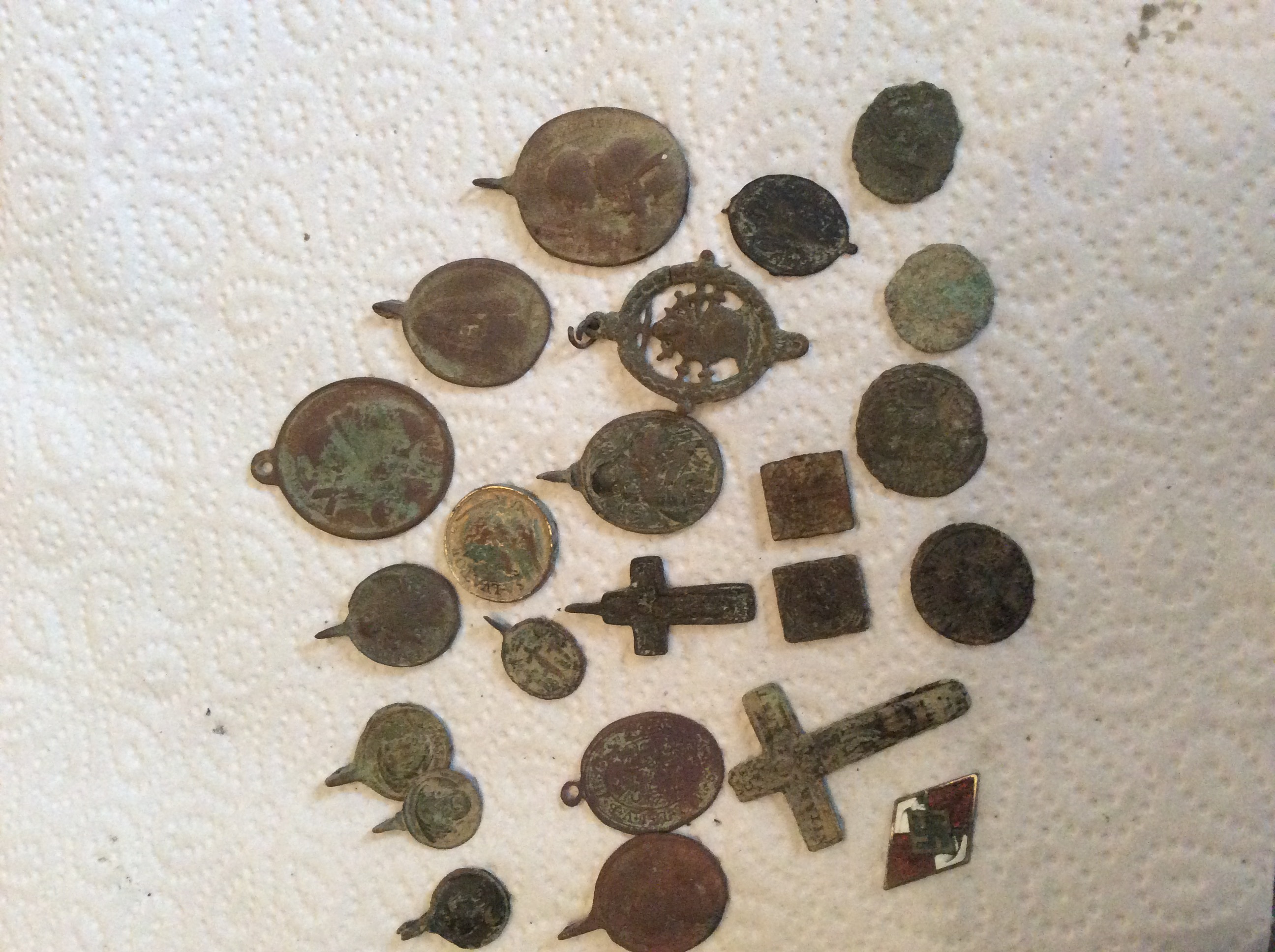 Wenn du Sachen gegen Rost oder sonstige Schäden schützen willst empfiehlt sich entweder restaurationswachs (recht teuer), Paraffine (sehr billig, kannst dir in der Apotheke in jeglicher Konsistenz holen), oder brüches wachs (auch nicht teuer). Bei Paraffine hast das Problem, dass deine Funde dunkler werden. Restaurationswachs hab ich noch nie versucht. Brüches Wachs find ich super. Verfälscht die Patina so gut wie gar nicht, ist für jedes Metall geeignet und sehr leicht zu verarbeiten. Zudem hast bei solchen Methoden den Vorteil, dass Konturen besser raus kommen und die Sachen danach schöner aussehen. Ich häng mal ein vorher nachher Bild an. Silber oder Gold, brauchst natürlich nicht mit Wachs behandeln, hier musst selbst wissen wie du die magst. Entweder nur mit Wasser reinigen und Patina erhalten oder mit gängigen Politur Mitteln reinigen bis du das gewünschte Ergebnis erzielst. Hierzu solltest du den Einsatz von Säure oder Lauge (gleiches Ergebnis) nur vorsichtig nutzen und dich erst mal an fast kaputten Münzen oder ähnlichem versuchen, sonst is ne schöne silbermünze ruck-zuck kaputt. Ich mach meine Funde so gut es geht sauber und silbermünzen poliere ich auch. Ich weis ja das sie echt sind und verkaufe auch nichts. Bei Fragen zu so etwas kannst auch gerne ne pn schicken.