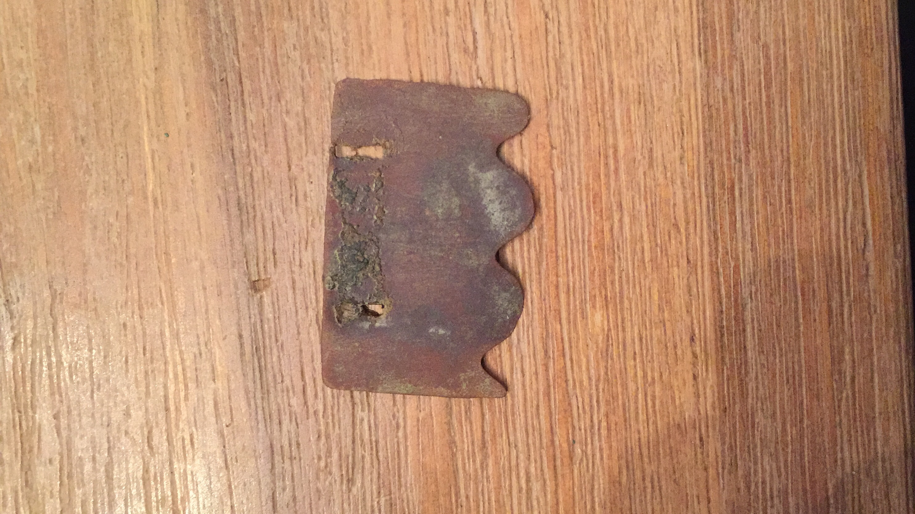 die ist wahrscheinlich von einer Schuppenkette, die als "Kinnriemen" an einer militärischen Kopfbedeckung, z.B. an einer Pickelhaube war.