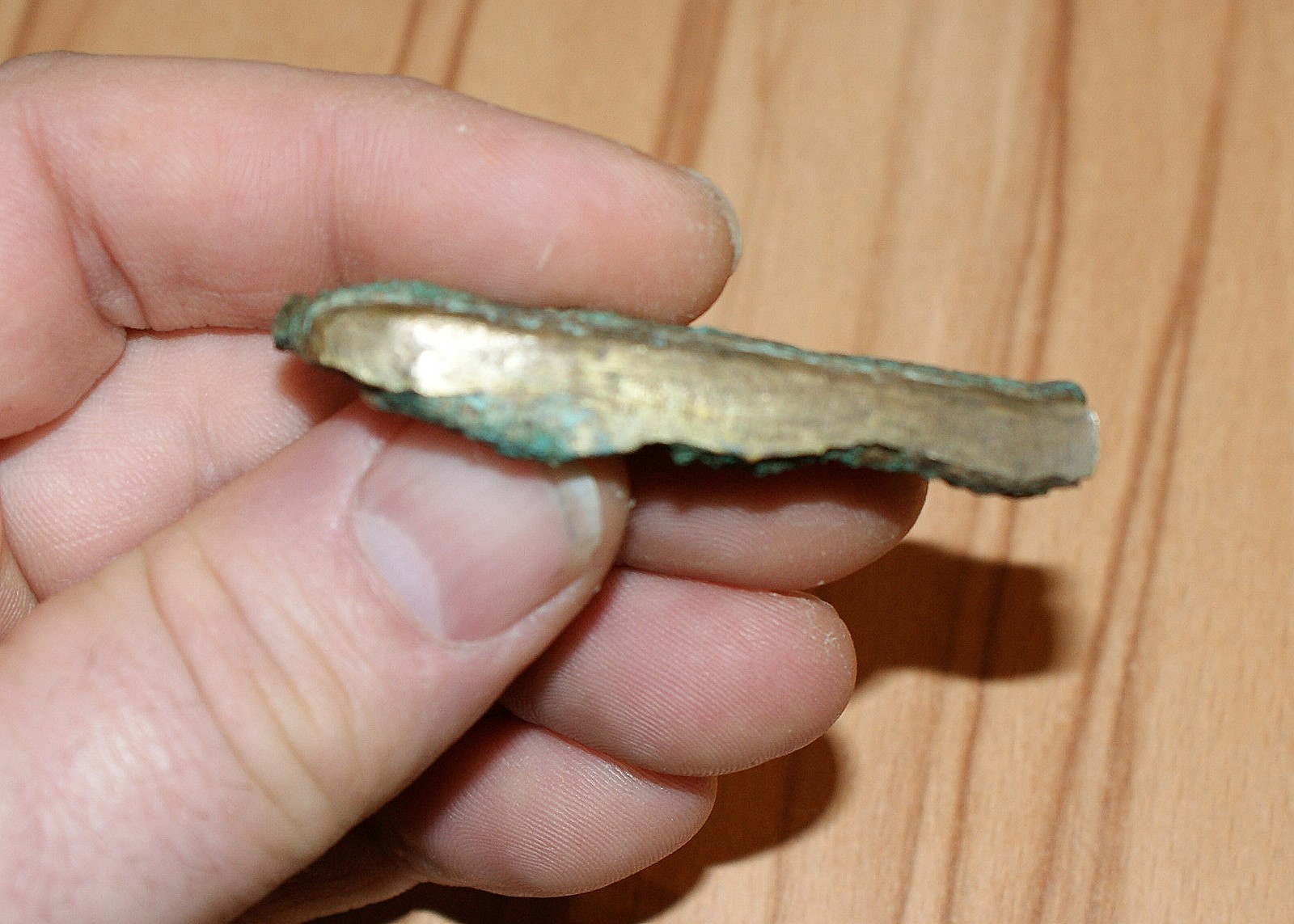 sehr schwer denke bronze ...hat man so was vergoldet zur römerzeit ?? leider fanden sich keine weiteren stücke oder fragmente dazu