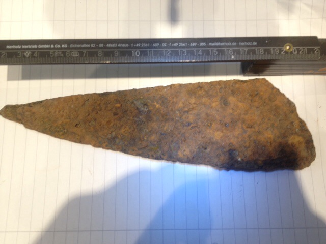 Vielleicht könnt ihr mir bitte helfen, was ich ihr gefunden habe, oben es ein schöner alter Fund vlt. Ein Schwert oder Messer ist oder ein Fall vür die Tonne
