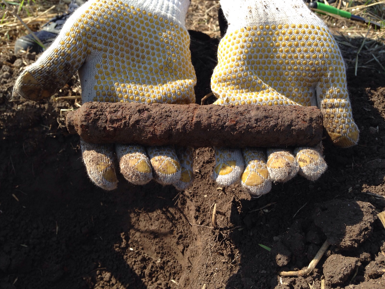 Folgendes Objekt haben wir auf dem Acker gefunden. Es ist ca. 20cm lang und schwer (Vollmaterial).