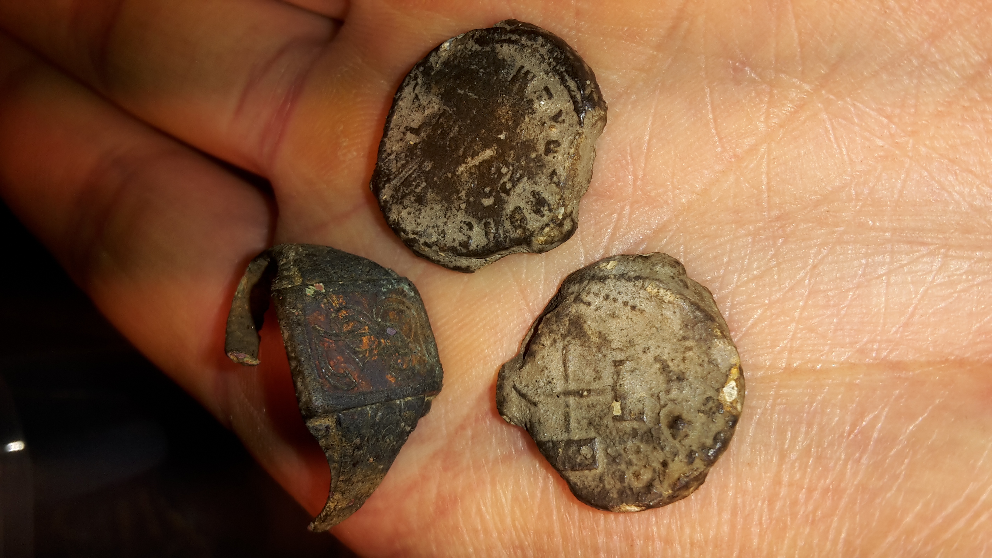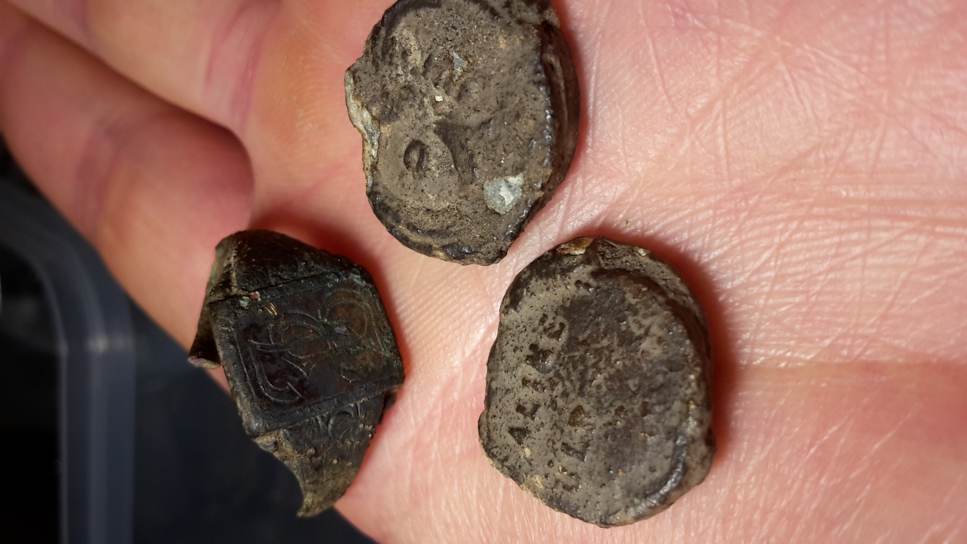 war heute mal bei meinem Nachbarn aufem Acker für ne halbe Std und habe dort ein paar interessante Funde gemacht..für mich sieht es aus als wenn es Bleimünzen sind, aber habe auch schon was von Bleiplomben für Saatgut ghört