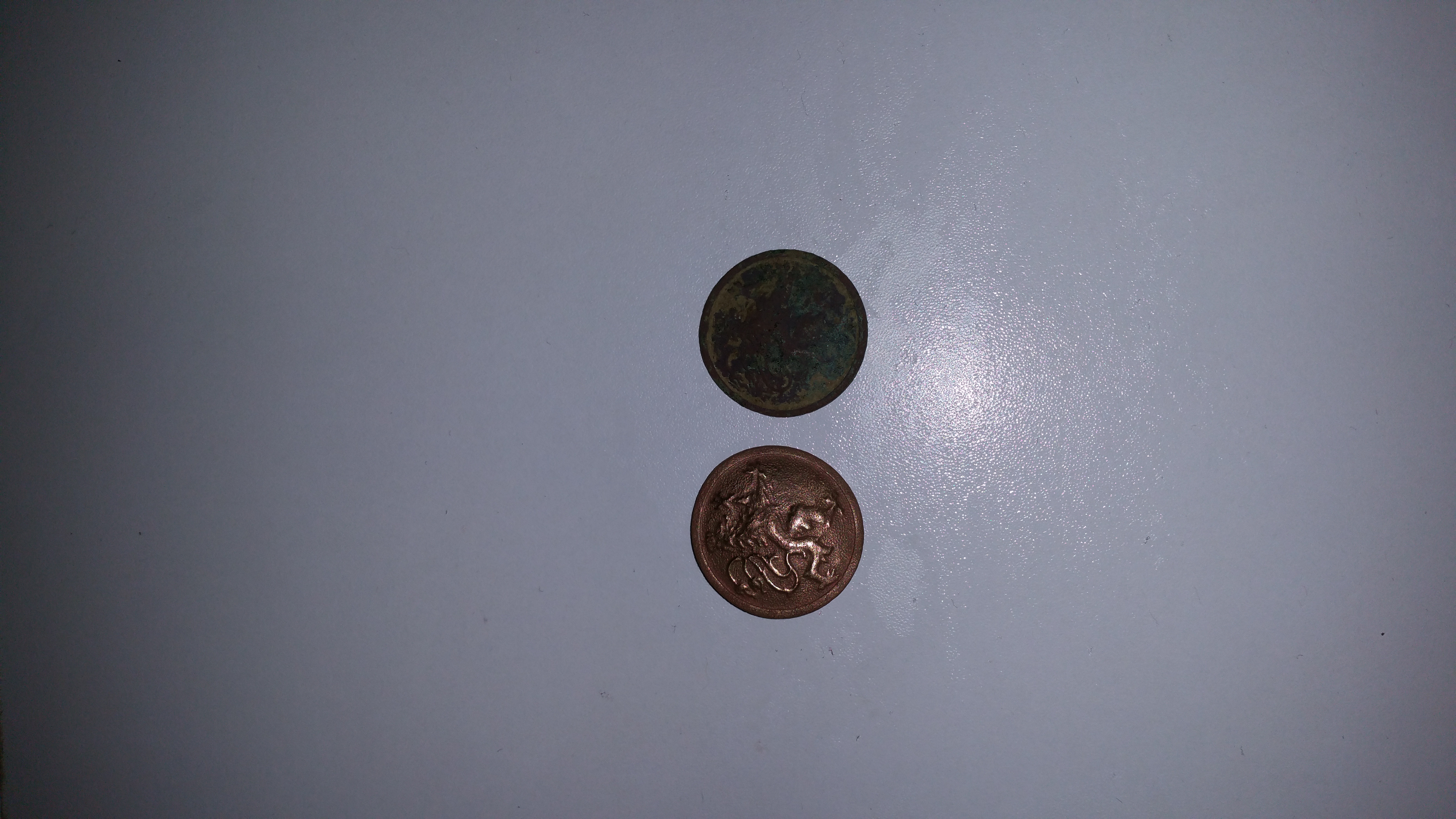 Hab hier mal ein Bild von zwei Bayerischen Armeeknöpfen, das das den einen vor der Restaurierung und den anderen danach Zeigt. Der Unterschied ist schon enorm. Was haltet ihr davon? Mich interessiert einfach mal eure Meinung dazu. Restaurieren oder im Orginal Fundzustand belassen? Ich habe einige dieser Knöpfe, deswegen habe ich einfach mal einen "Geopfert". Das Ergebnis kann sich meiner Meinung nach sehen lassen oder?