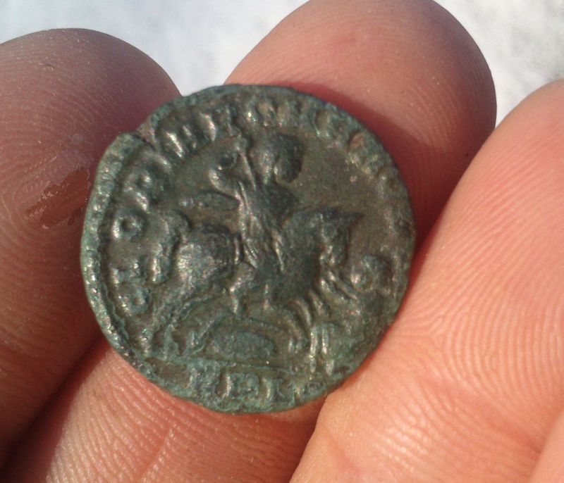 Der total verknasterte Follis wurde oft und sanft mit Kaisernatron abgrieben, bis zu dem Stadium vor der Mikr.Reinigung.