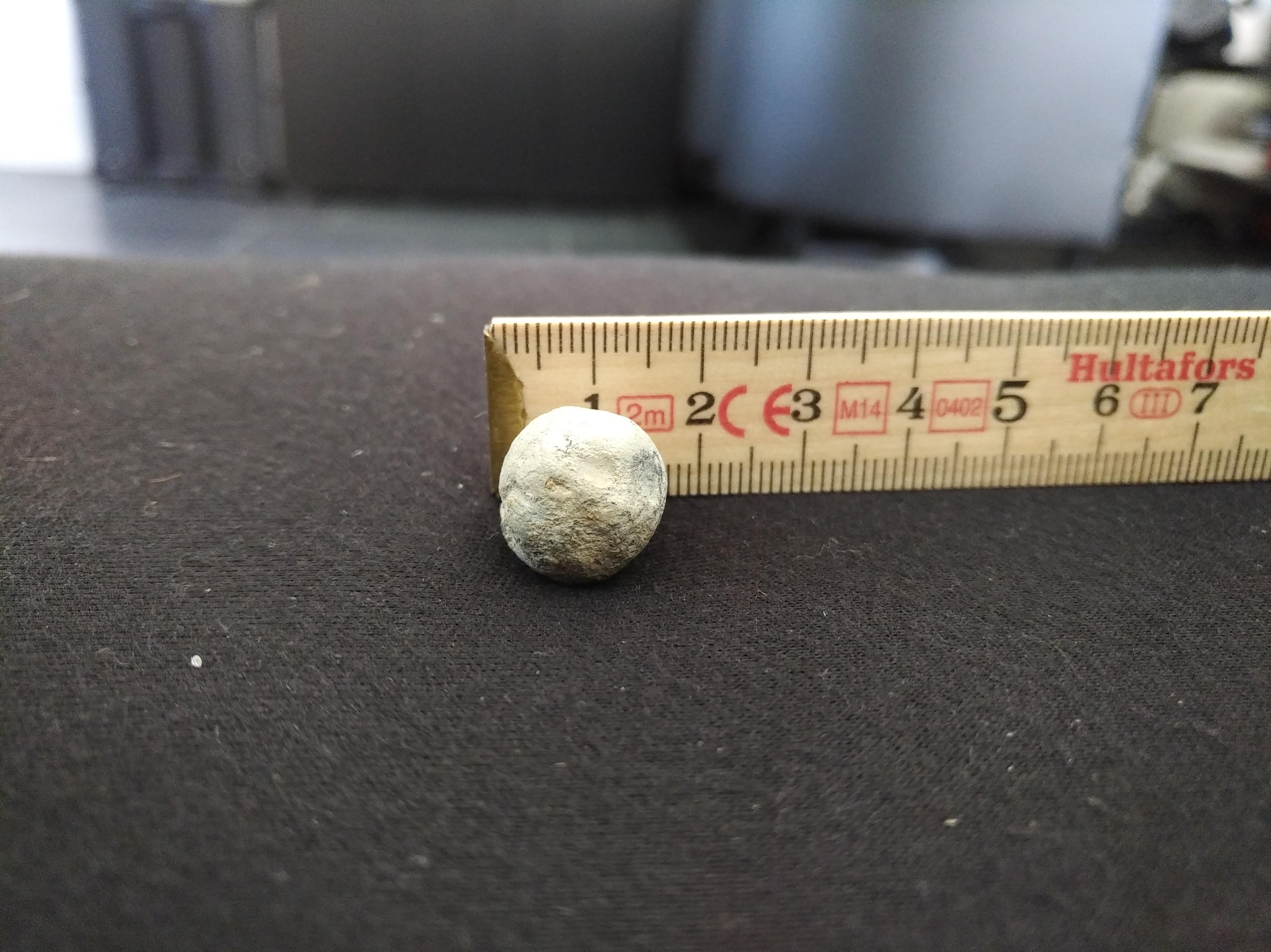 Nach eigenen Recherchen gehe ich nun davon aus, dass es sich um eine Musketenkugel handeln könnte.