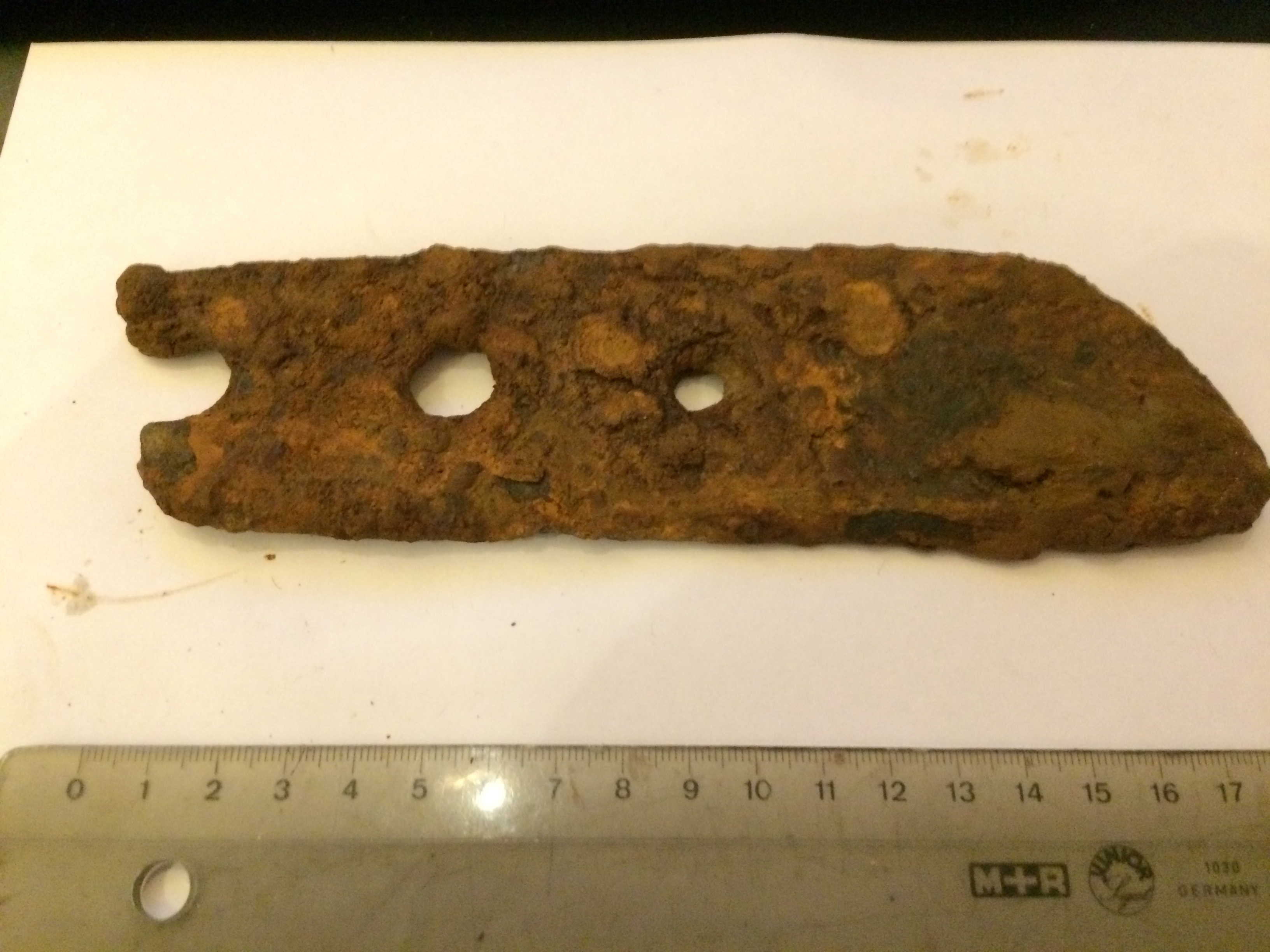 Dann dachte ich hier bei dem Stück zuerst es sei nur Schrott, bin mir wegen der Form aber nicht mehr 100% sicher, das kommt nachher noch ins Oxalbad und dann poste ich morgen nochmal das gereinigte Teil, aber vielleicht hat ja schon irgendwer eine Vermutung:
