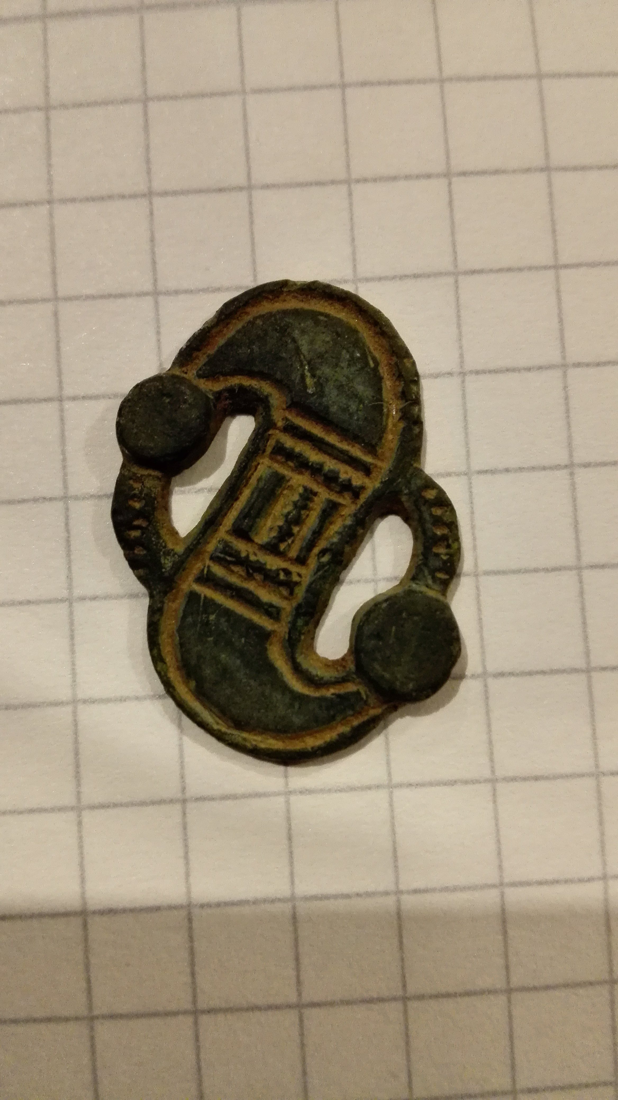 Völkerwanderungs- Merowingische Fibel. Nadelapparat war angelötet. Stellt zwei Vögel da mit krummen Schnäbeln.