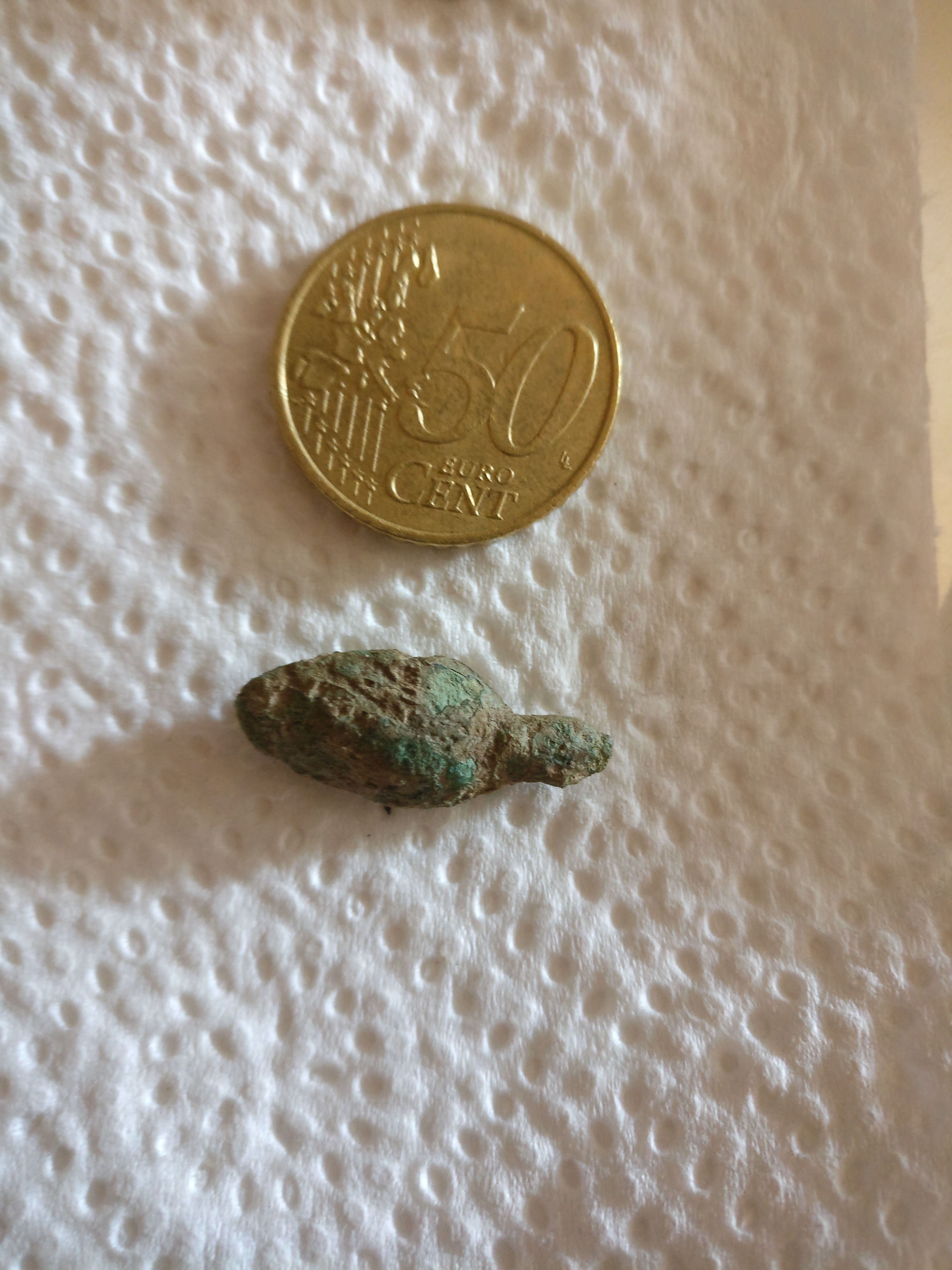 Auf einem Acker in Hessen gefunden. Umgebung von Kelten, später von Germanen besiedelt. Eine Freundin welche ein paar Semester Archäologie studiert hat, ist sich ziemlich sicher, dass es sich um eine Pfeilspitze handelt. Anhand der Größe vermutlich zur Jagd verwendet. Jedoch konnte sie mir nichts bezüglich des Alters sagen... Jetzt seid ihr gefragt :winken: