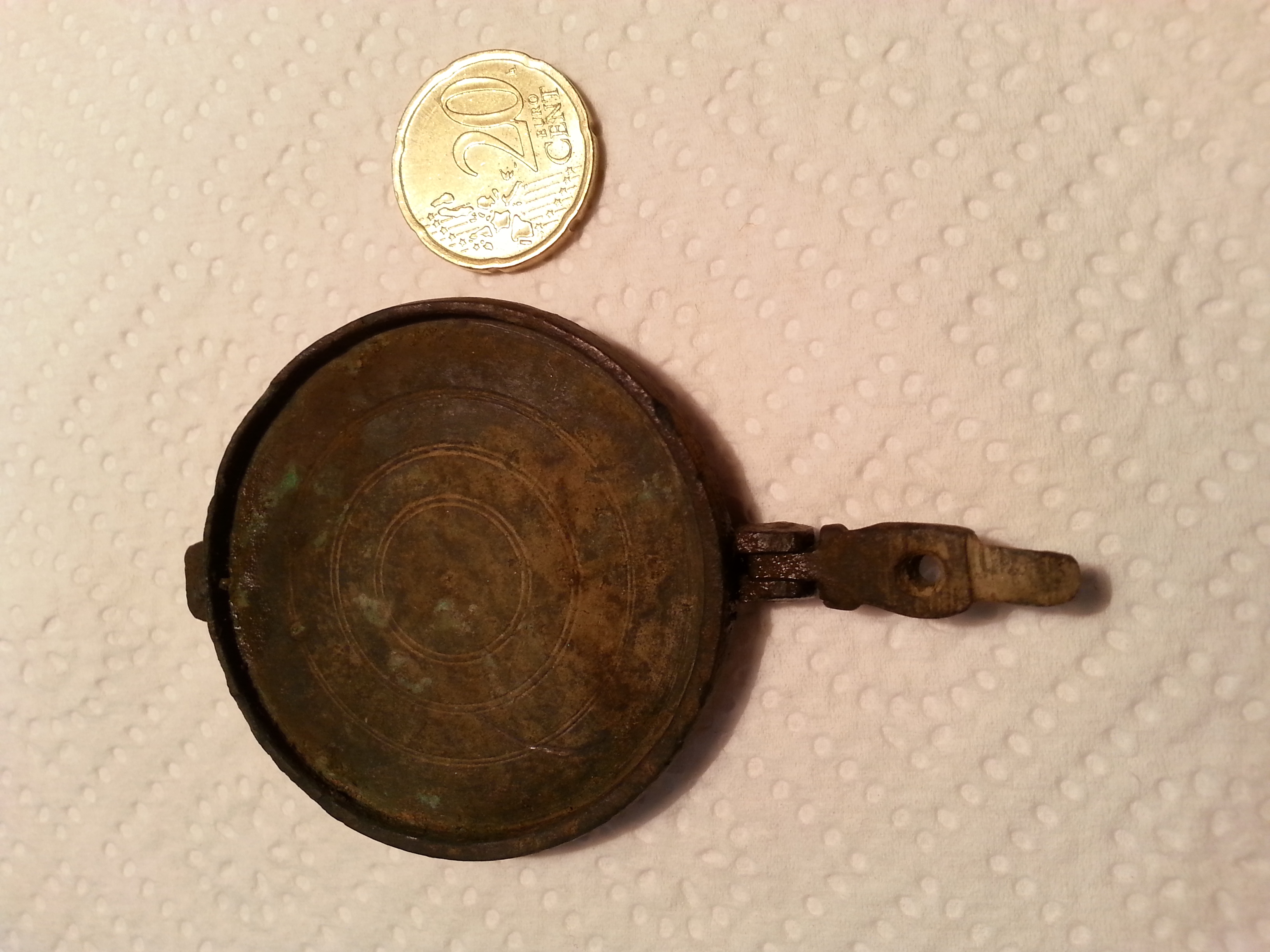 könnte Bild 1 - 3 ein alter Kompass sein? Material schätze ich auf Bronze (oder Kupfer). Es hat ein Gelenk das sich biegen lässt.
