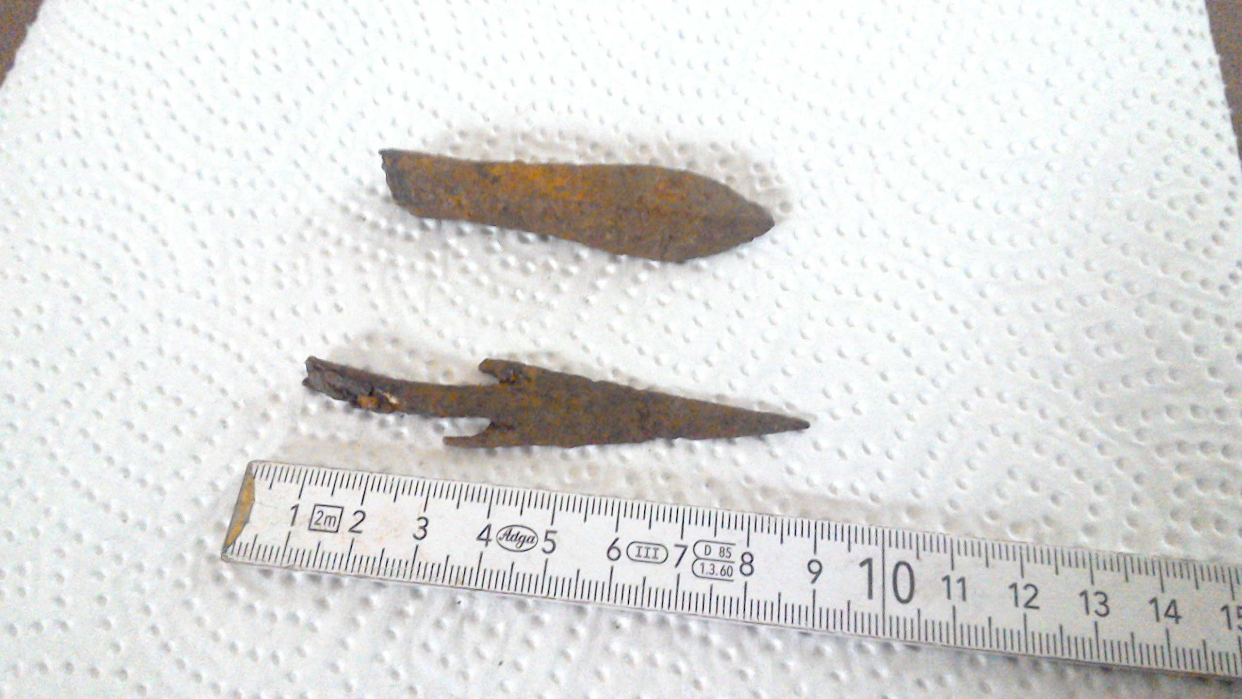 ich war auch mal wieder unterwegs. Diesmal auf einem Burgstall. Die Pfeil und Armbrustspitze kann ich selber erkennen.