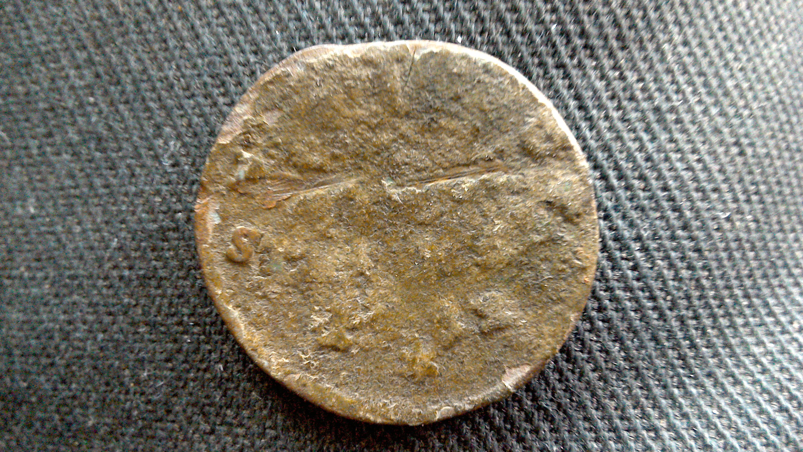 Die Münze ist im schlechten Zustand und finde auch nichts dazu. Bei den Messerähnlichen Gegenstände ist zu bezweifeln