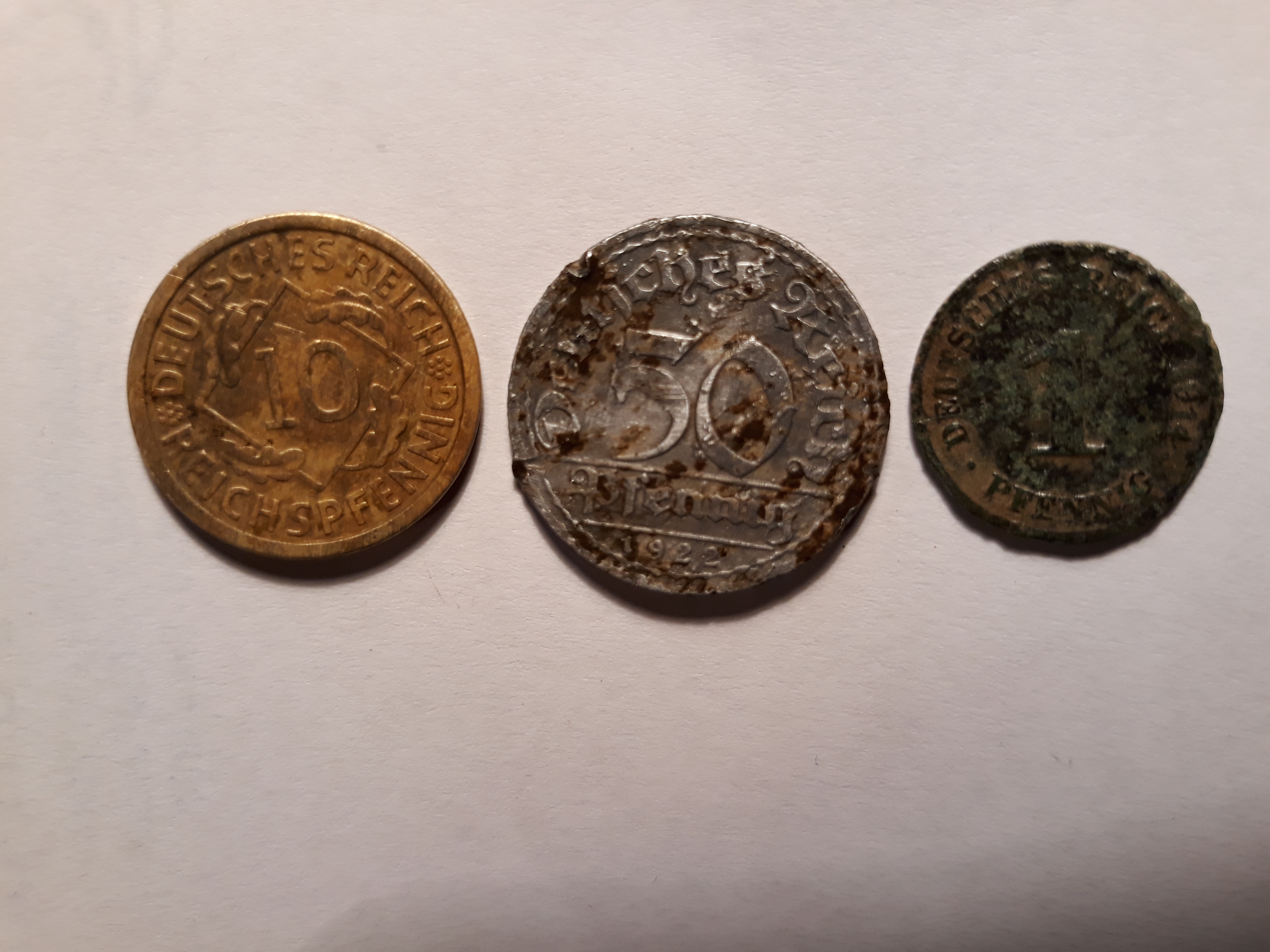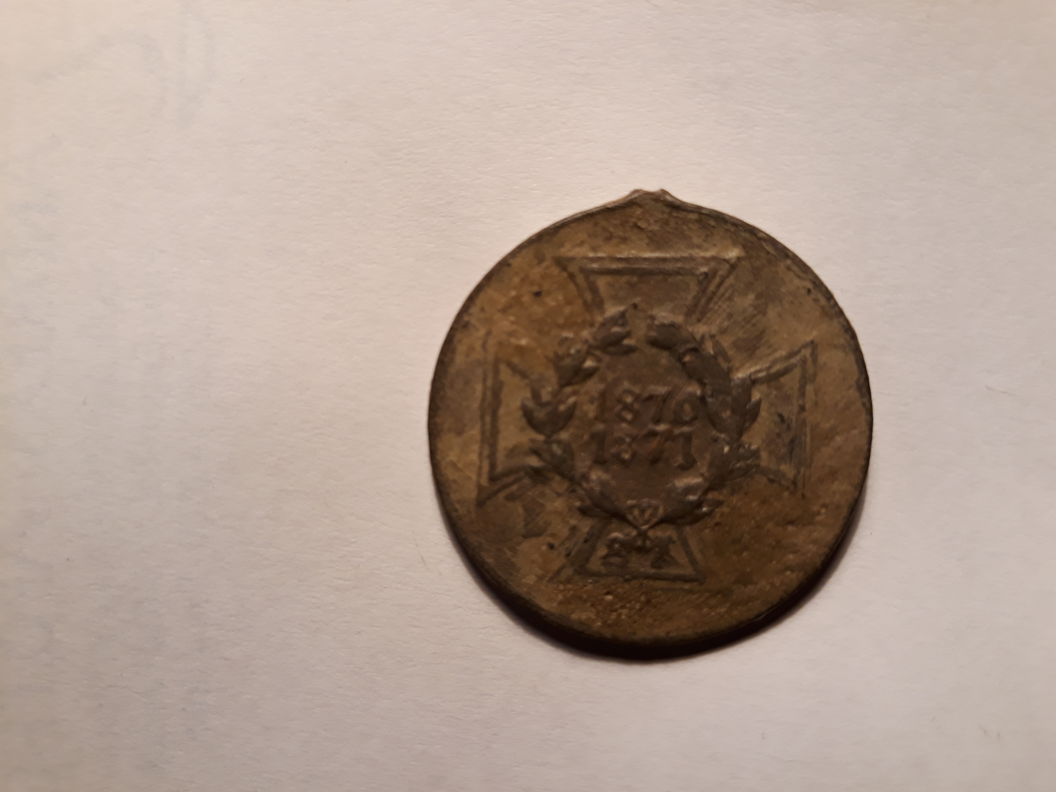 sehr schöne funde! die kriegsgedenkmünze hab ich auch schonmal gefunden,die wurde übrigens aus erbeuteten französischen Kanonen gegossen!