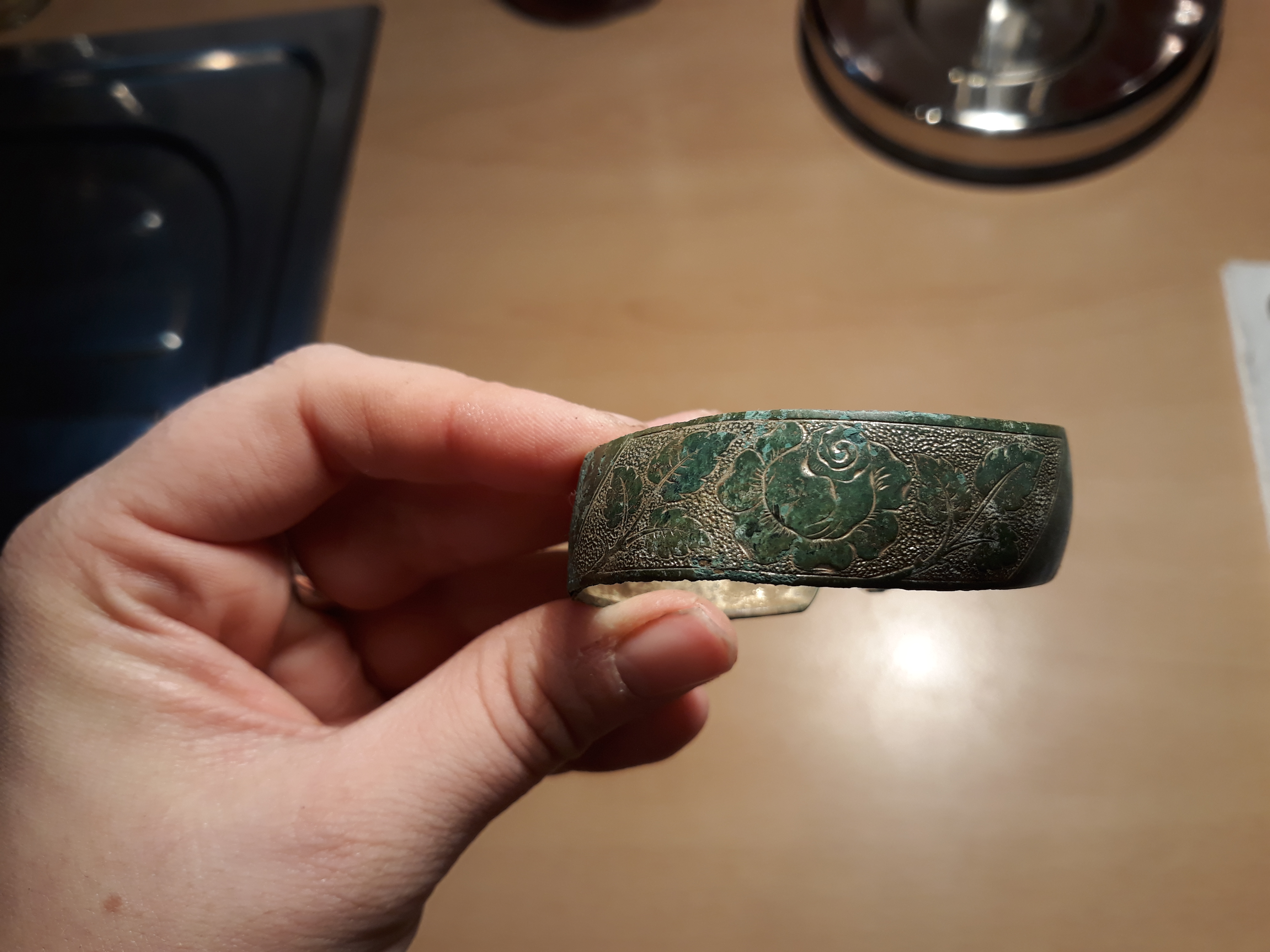 jemand eine Ahnung wie alt dieser Armreif sein könnte? Er scheint vergoldet oder versilbert zu sein. Material ist schwer zu sagen, denke Bronze. Er wiegt 10 g.