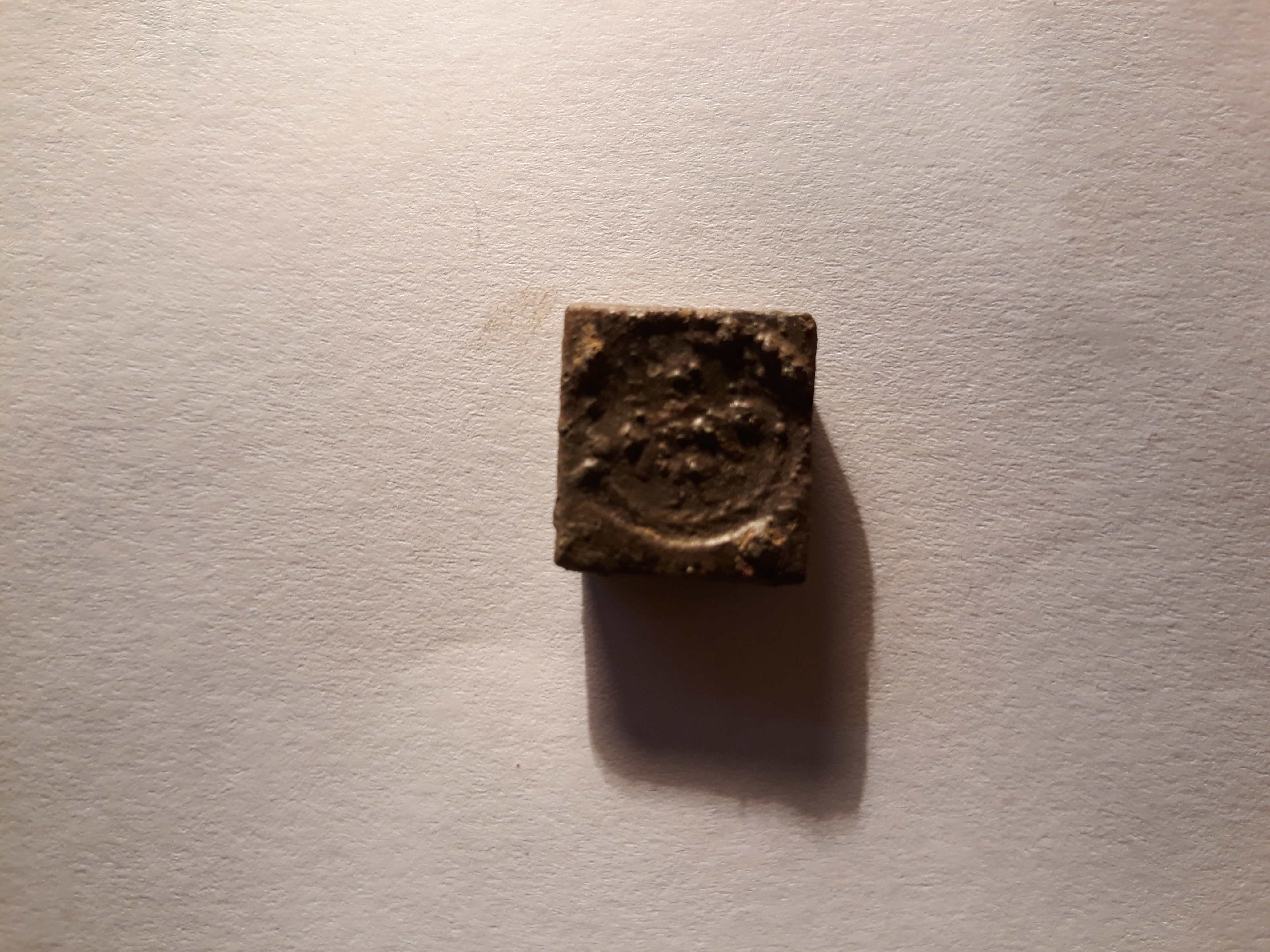 Leider kann man auf diesem nicht mehr viel erkennen. Es wiegt 6 g und ist aus Kupfer. Vorderseite: eine Person in einem Kreis. Es ist klippenförmig und die Rückseite ist komplett blank.