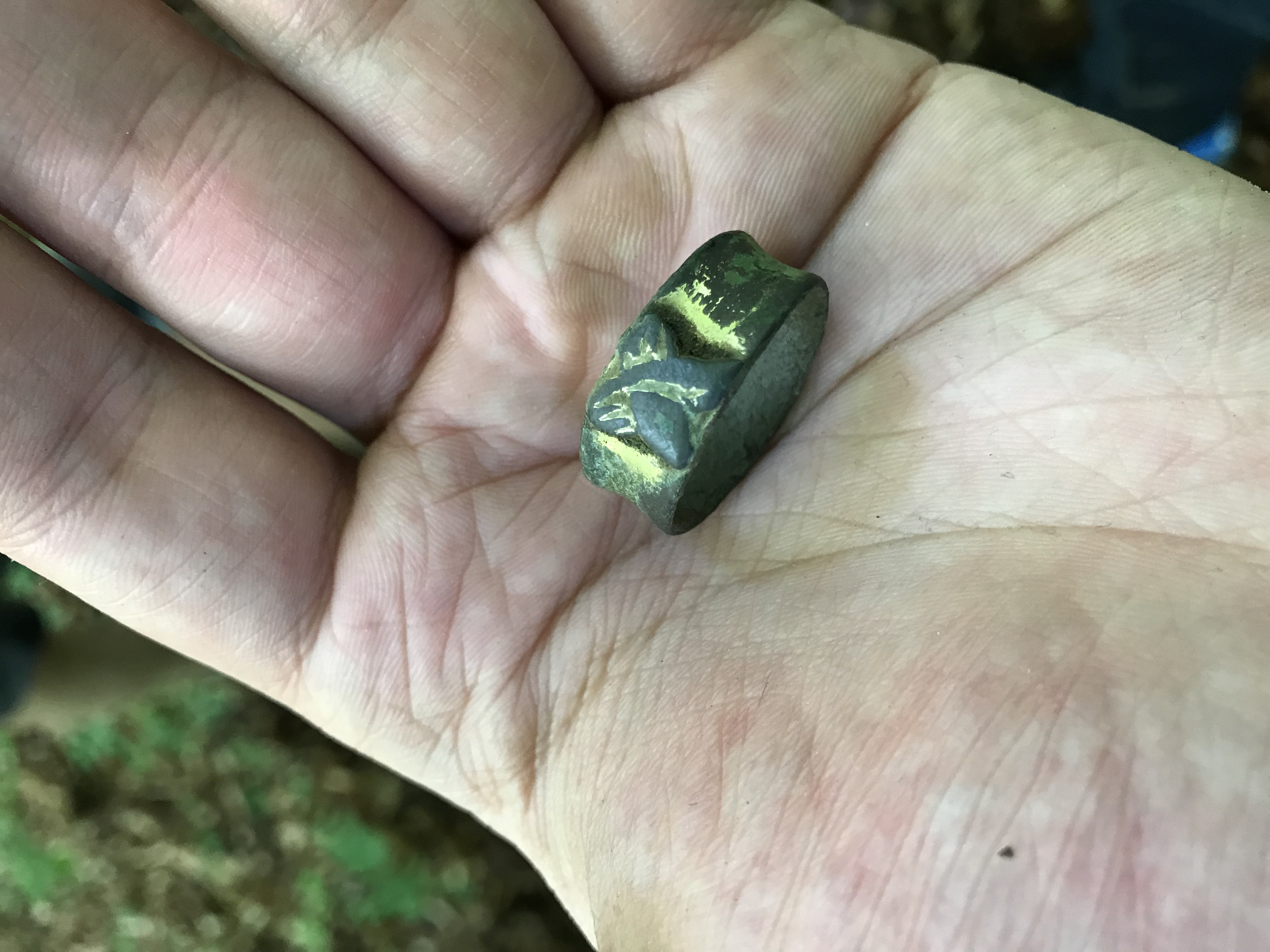 Er wiegt 6 Gramm und ist möglicherweise aus Bronze und vergoldet.