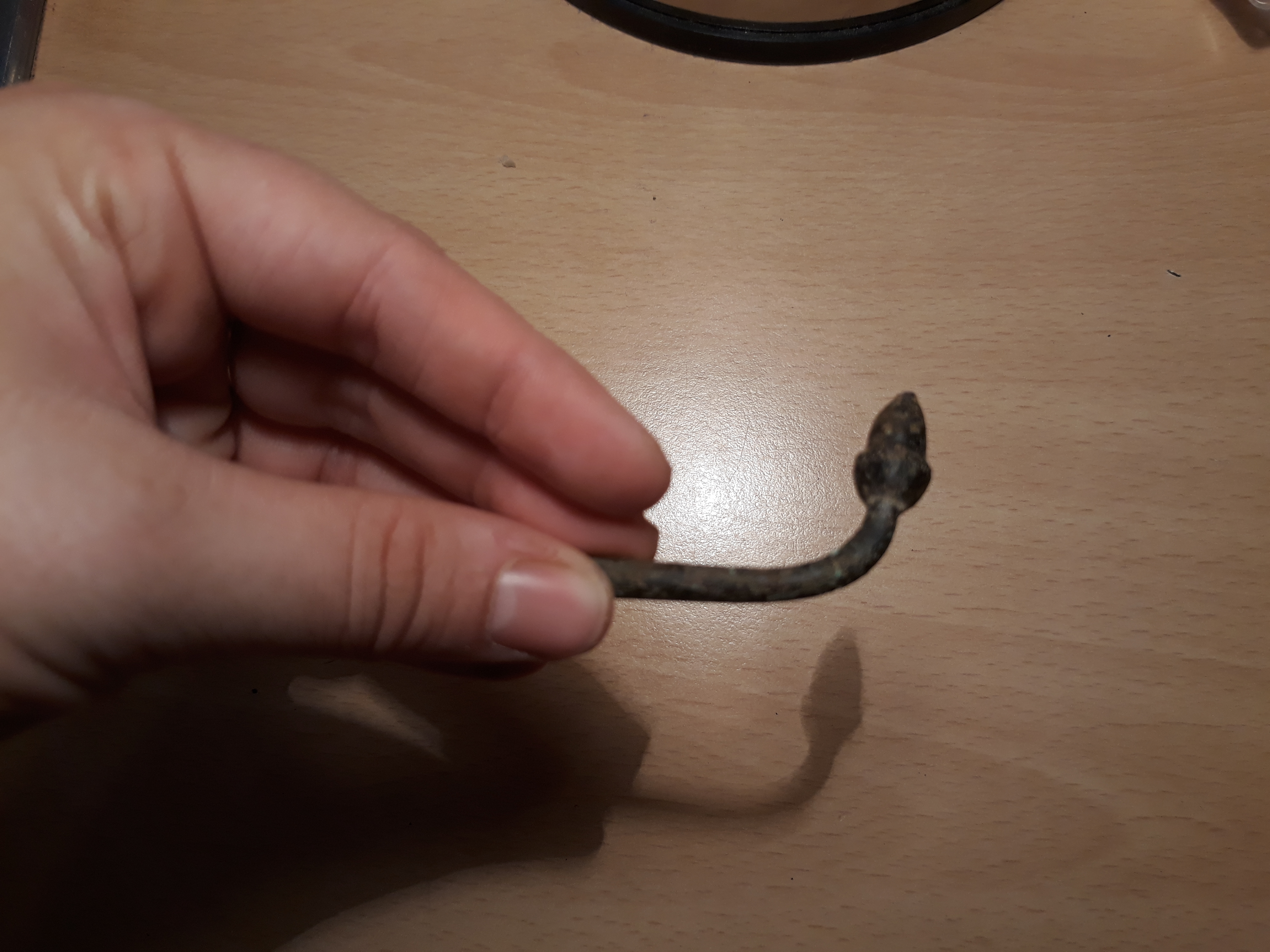 Teil eines Kleiderhakens oder Garderobenhakens so um die Jahrhundertwende, kenne die Dinger.