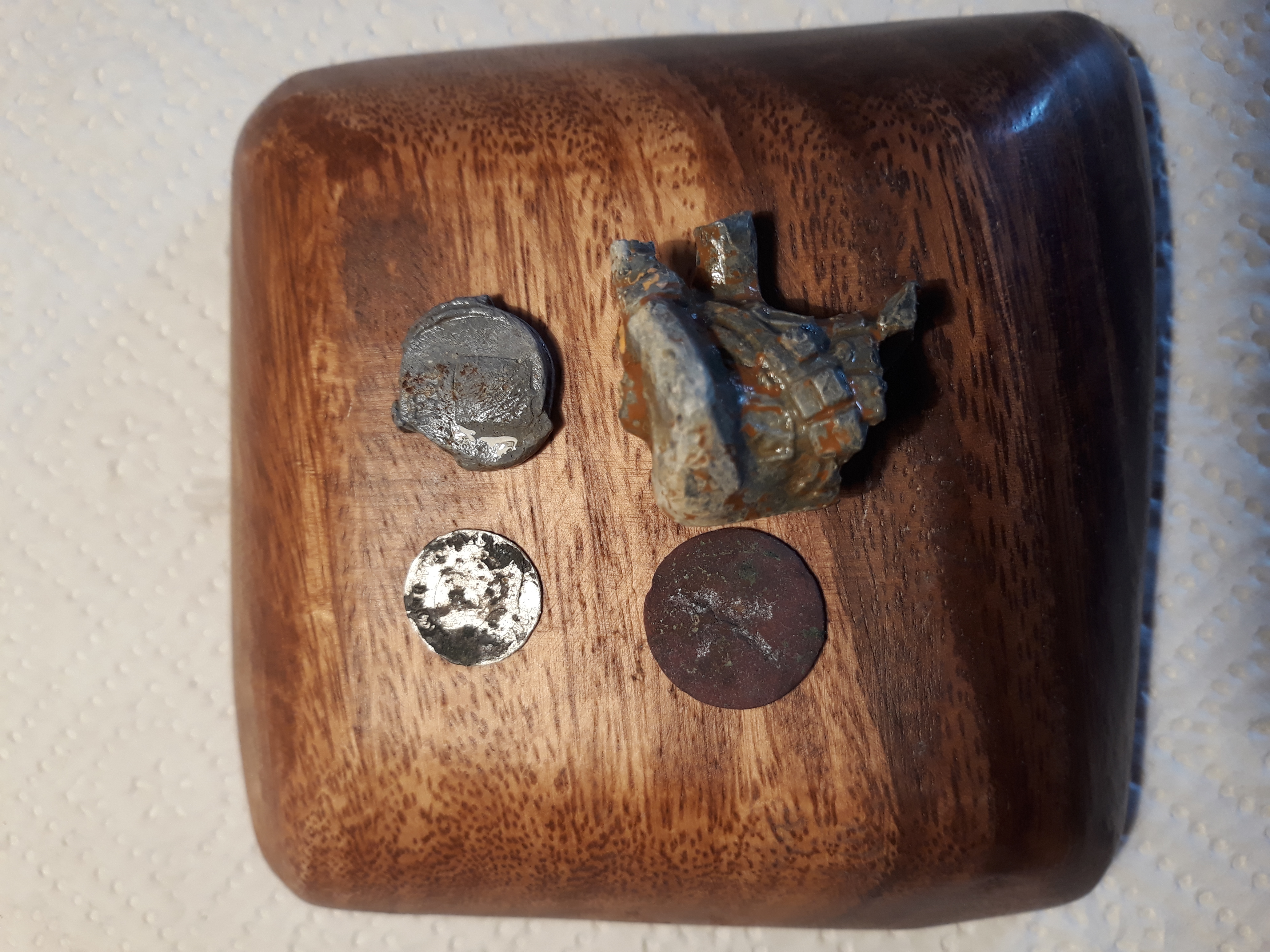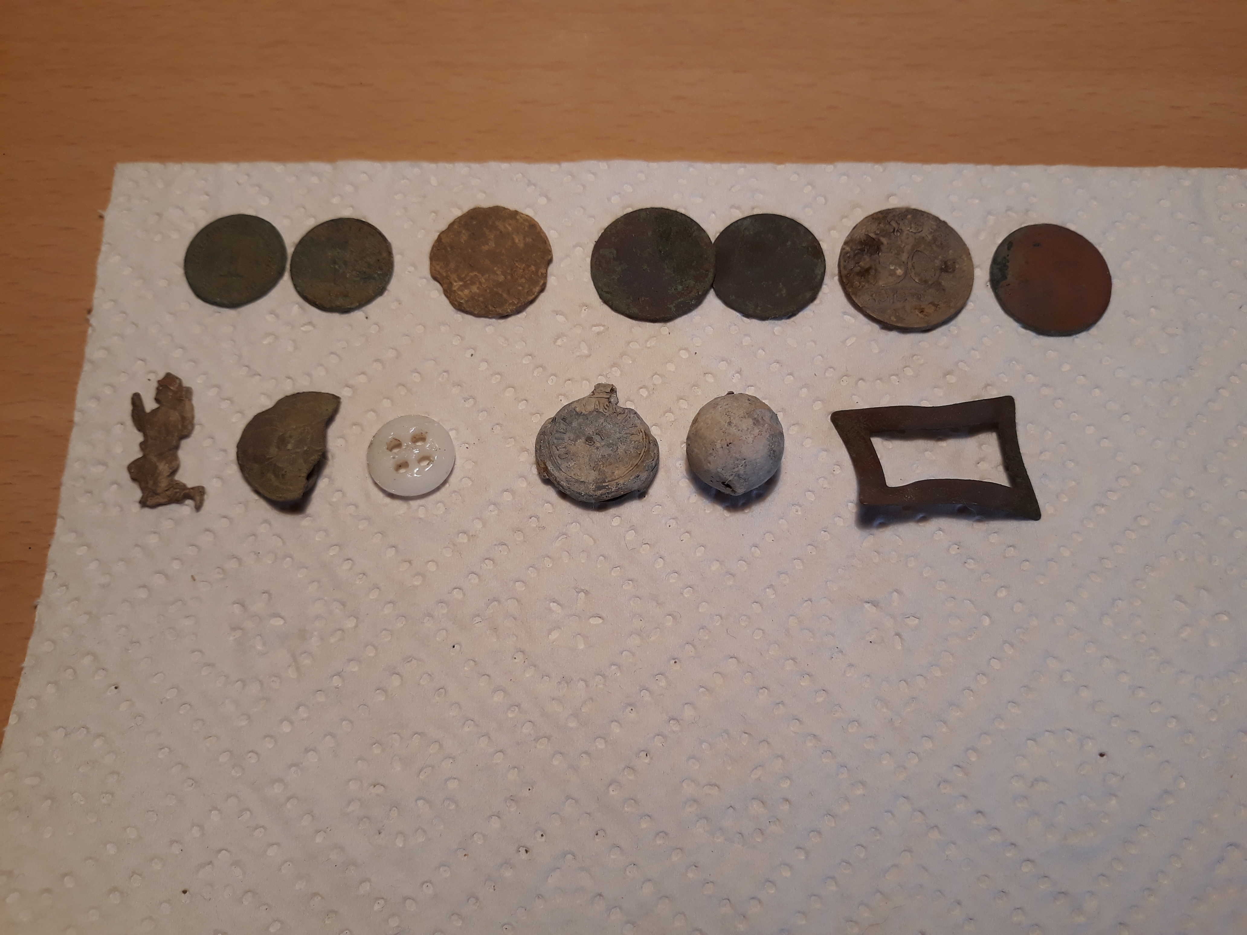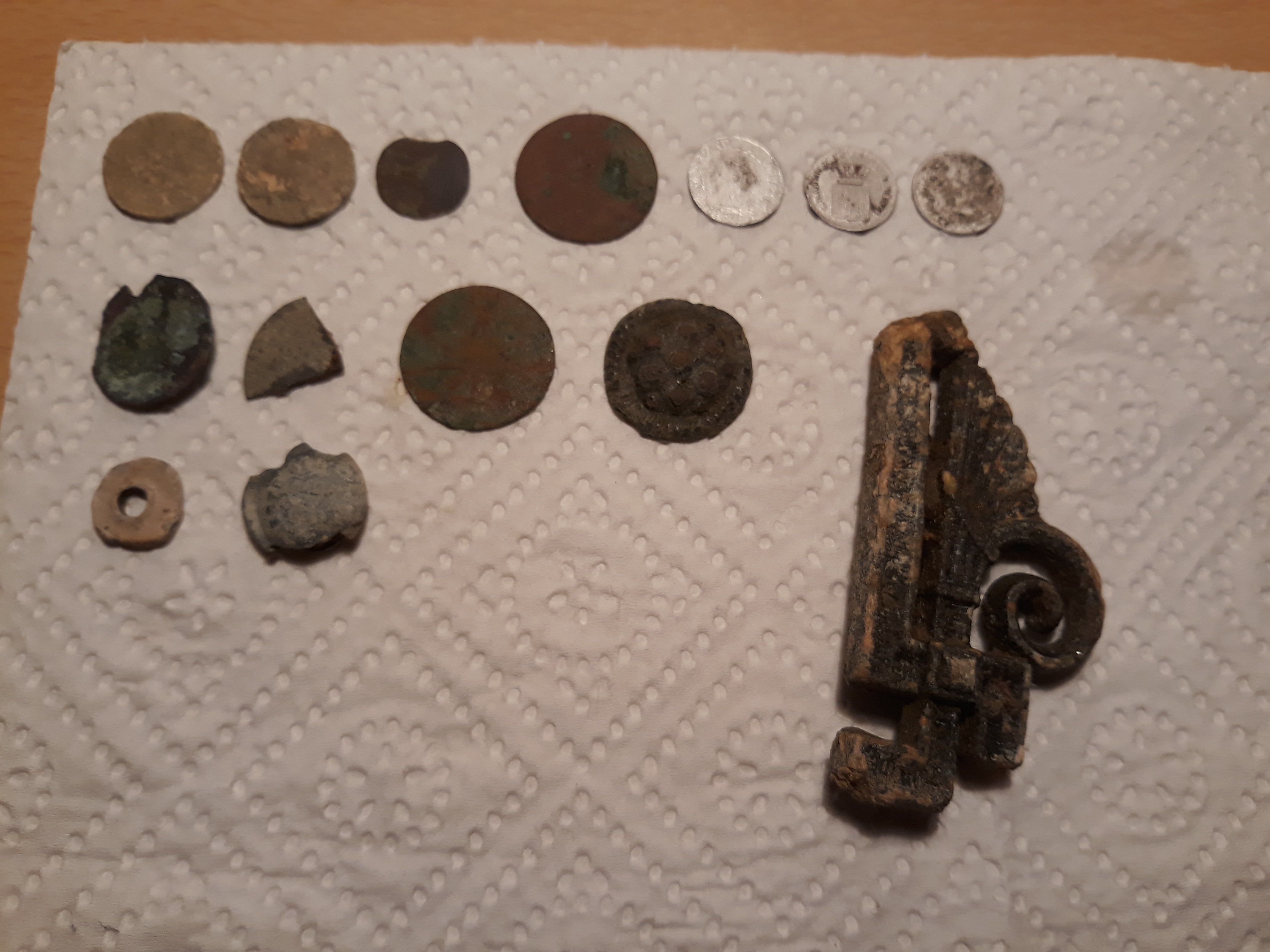 kleiner Tierkopf, Schuhschnalle, Knöpfe, Silbermünzen