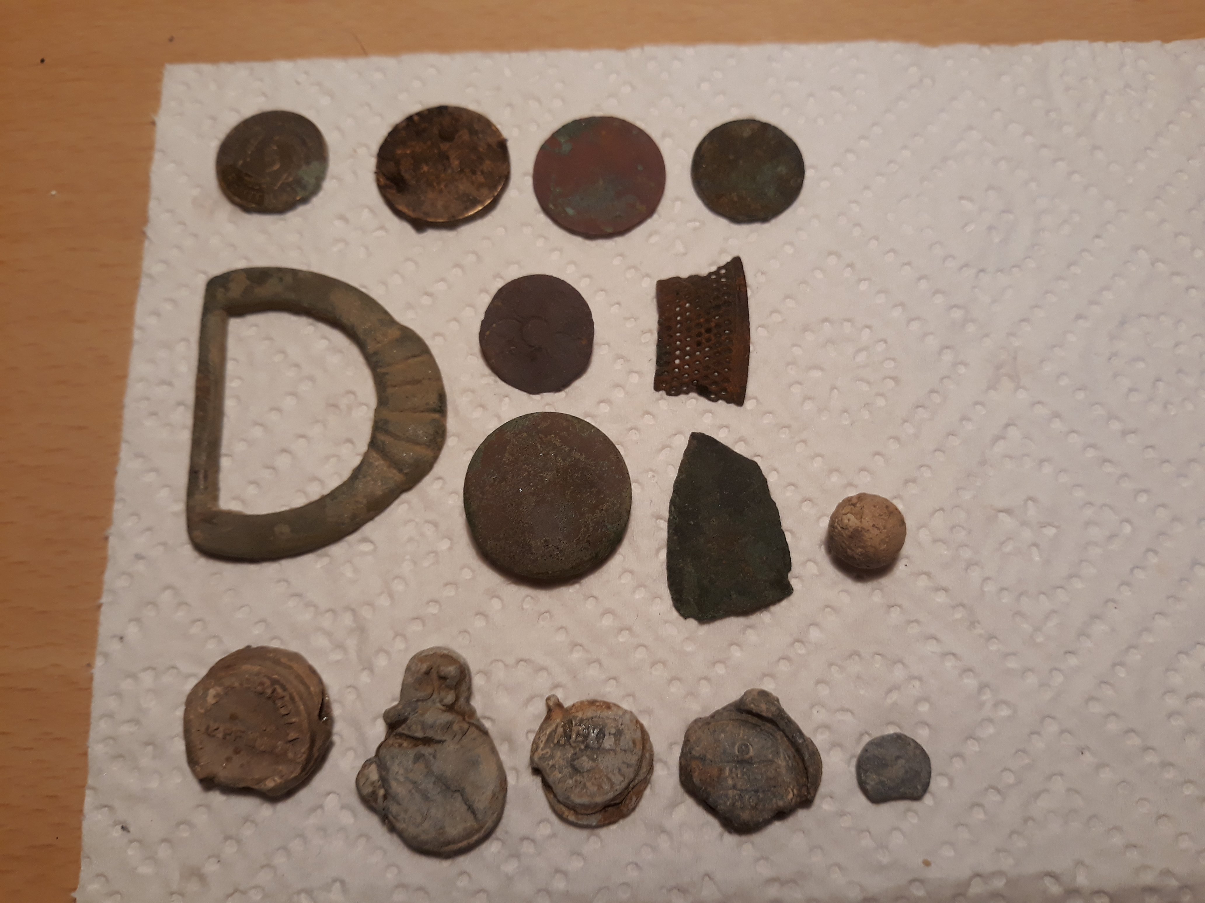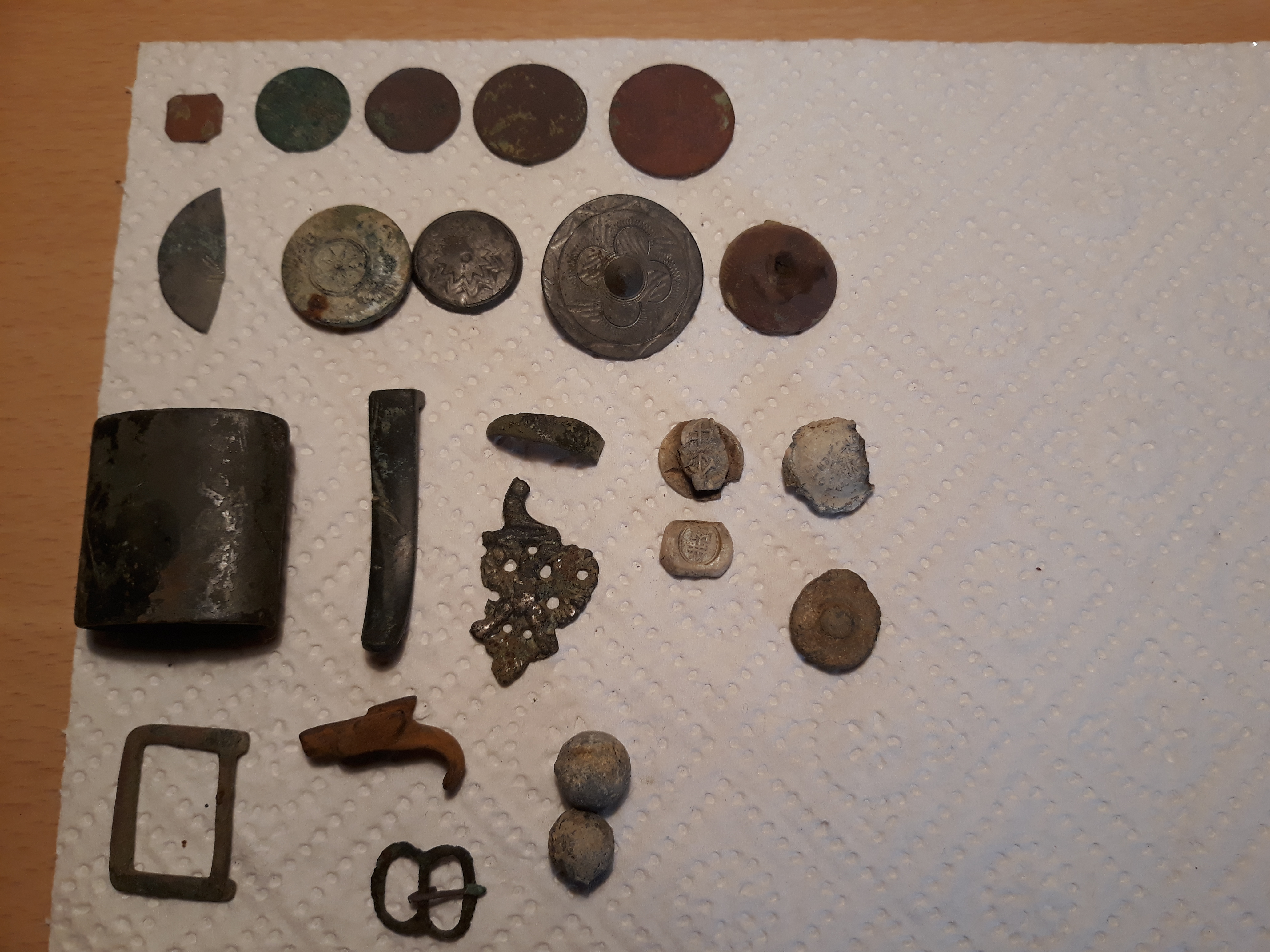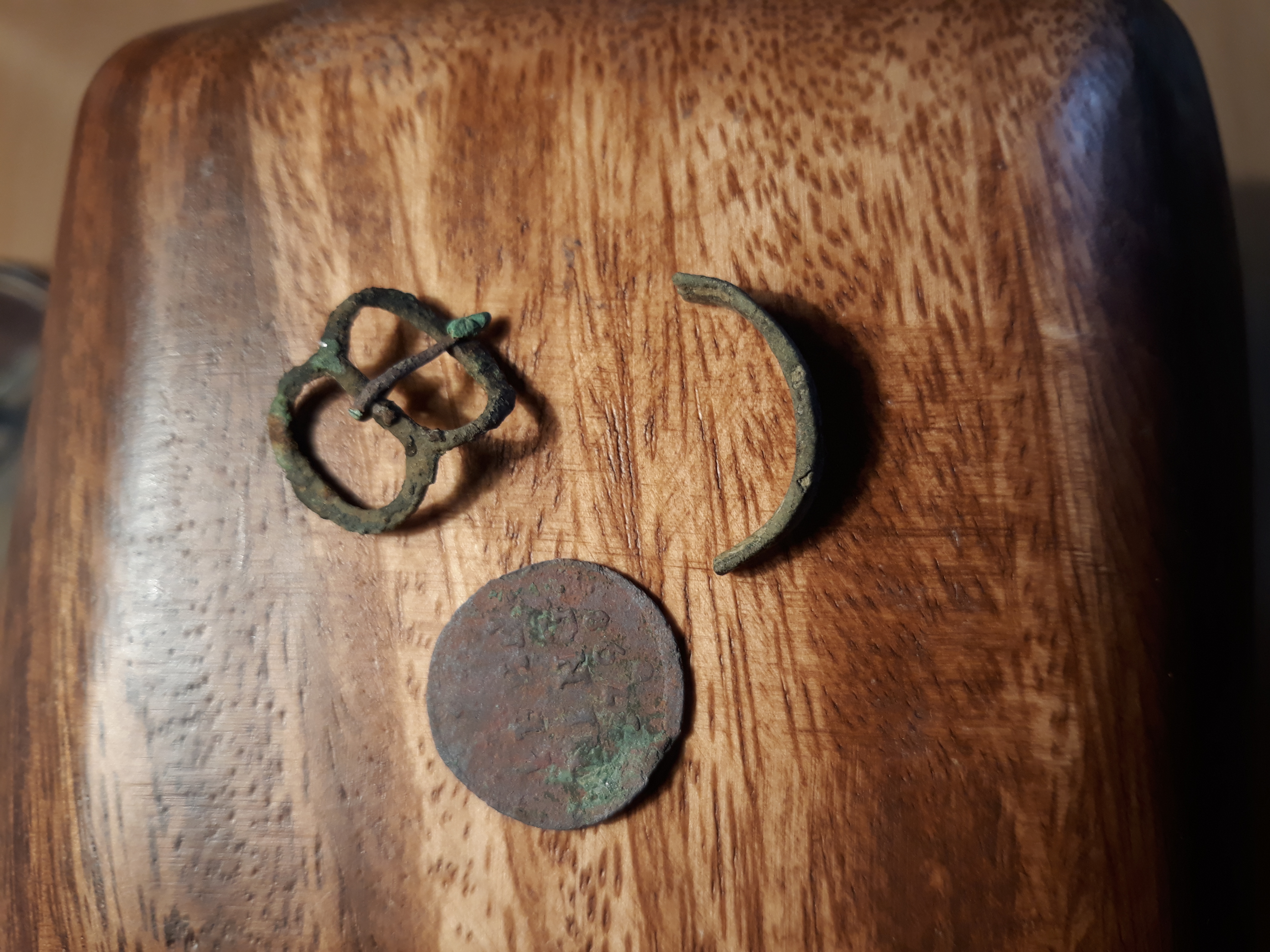 kleiner Tierkopf, Schuhschnalle, Knöpfe, Silbermünzen