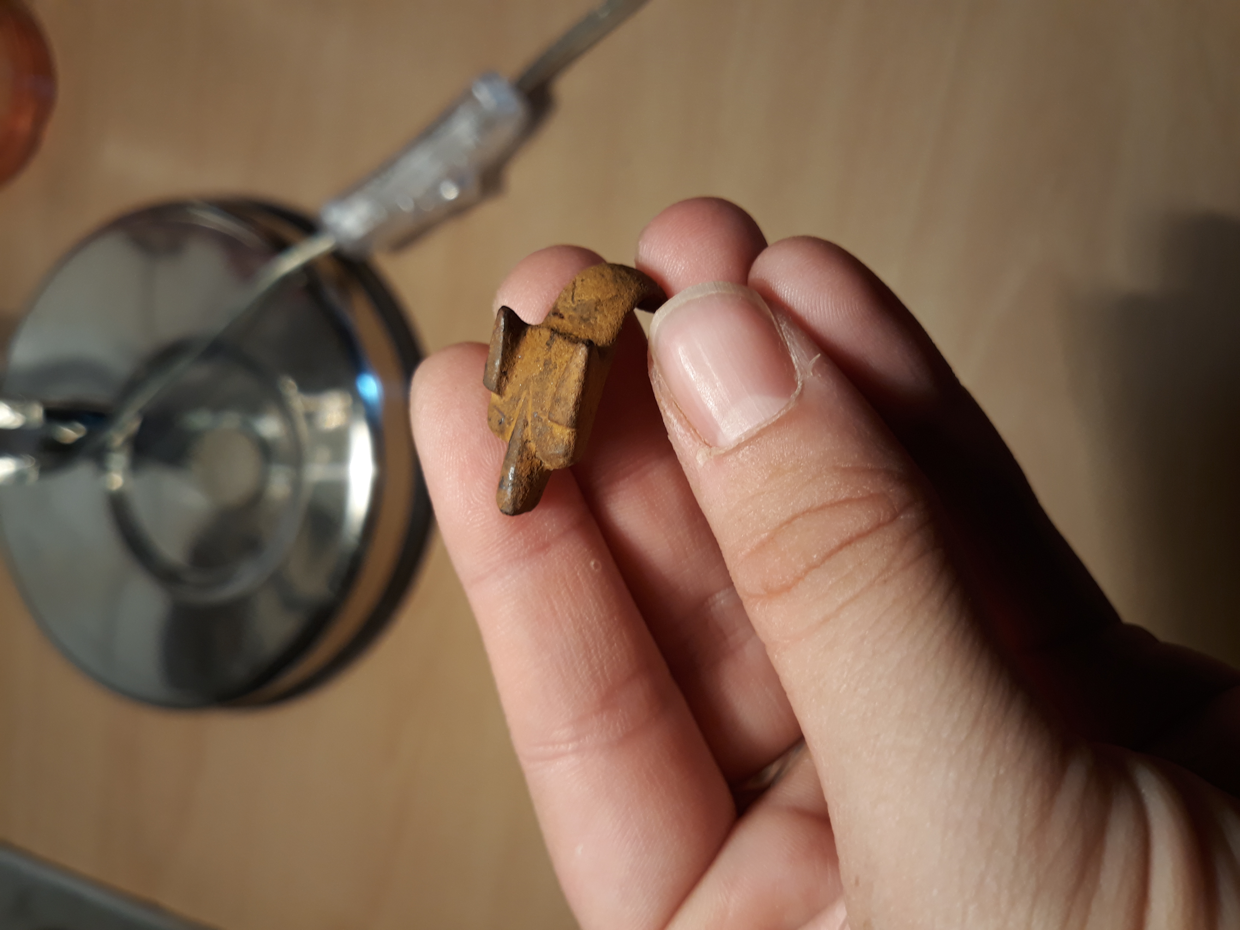 1. Woher könnte der kleine Tierkopf stammen? Material ist diesesmal auch etwas schwierig: definitiv kein Bronze, für Kupfer finde ich zu hell und gleichmäßig..verfärbte sich beim Saubermachen auch nicht